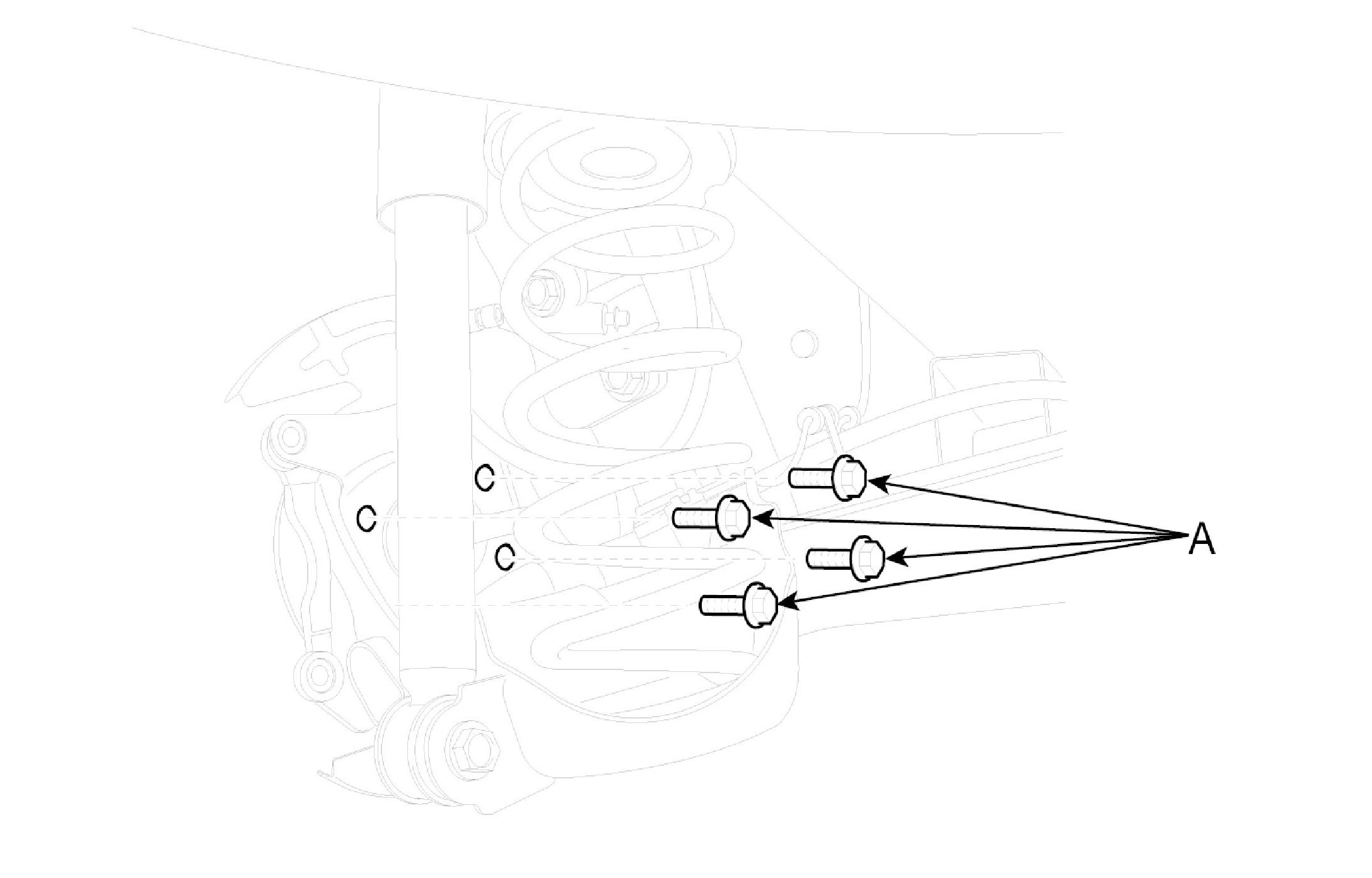 3. Remove the brake caliper assembly (A) from the carrier assembly and suspend it with wire.