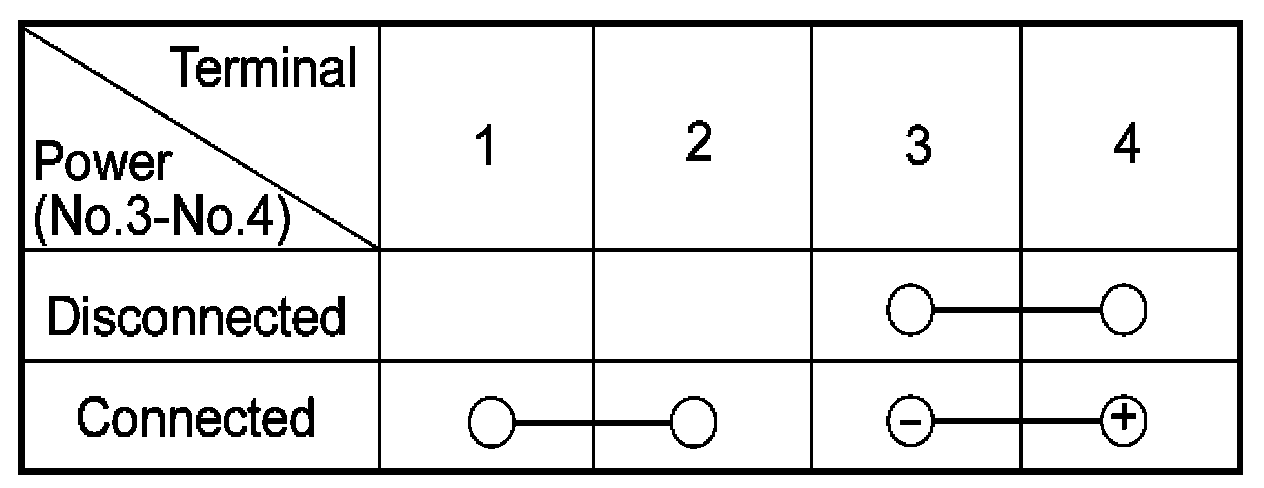 2. There should be continuity between the No.1 and No.4 terminals when power is disconnected.
