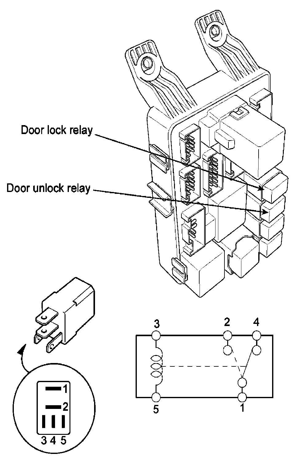 1. There should be continuity between the No.1 and No.2 terminals when power and ground are connected to the No.3 and No.5 terminals.