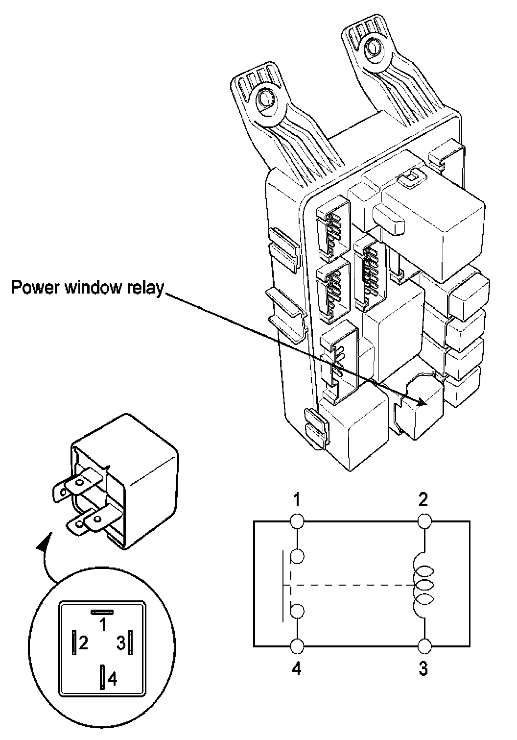 1. There should be continuity between the No.1 and No.4 terminals when power and ground are connected to the No.2 and No.3 terminals.