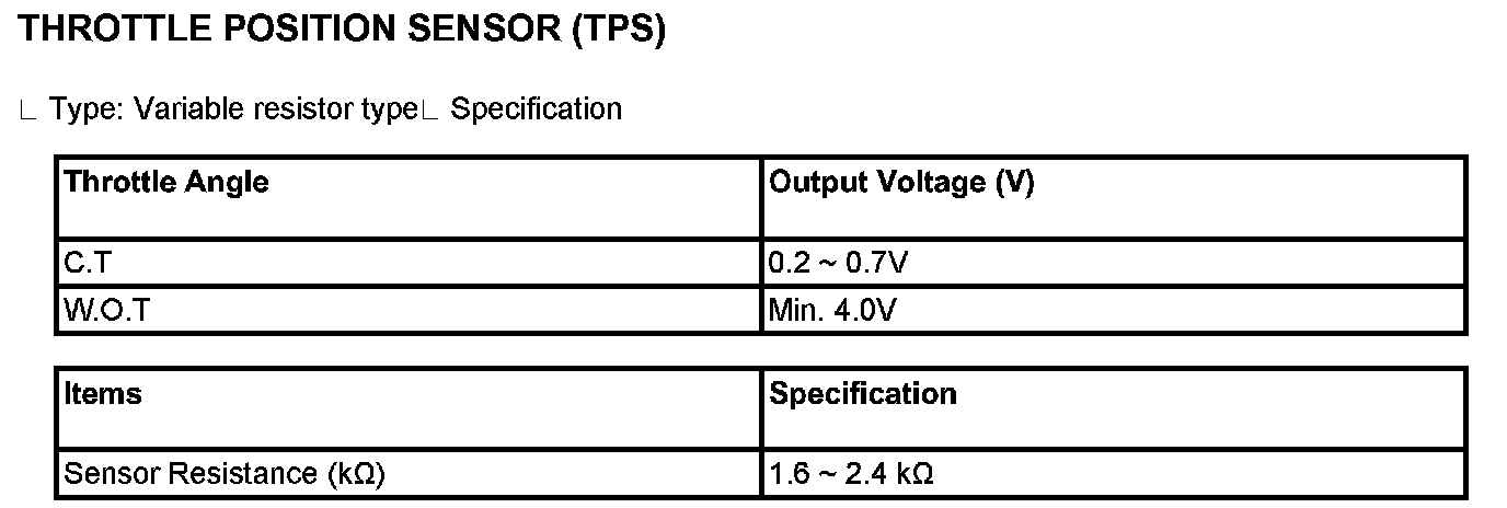 Throttle Position Sensor (TPS) - Specification: