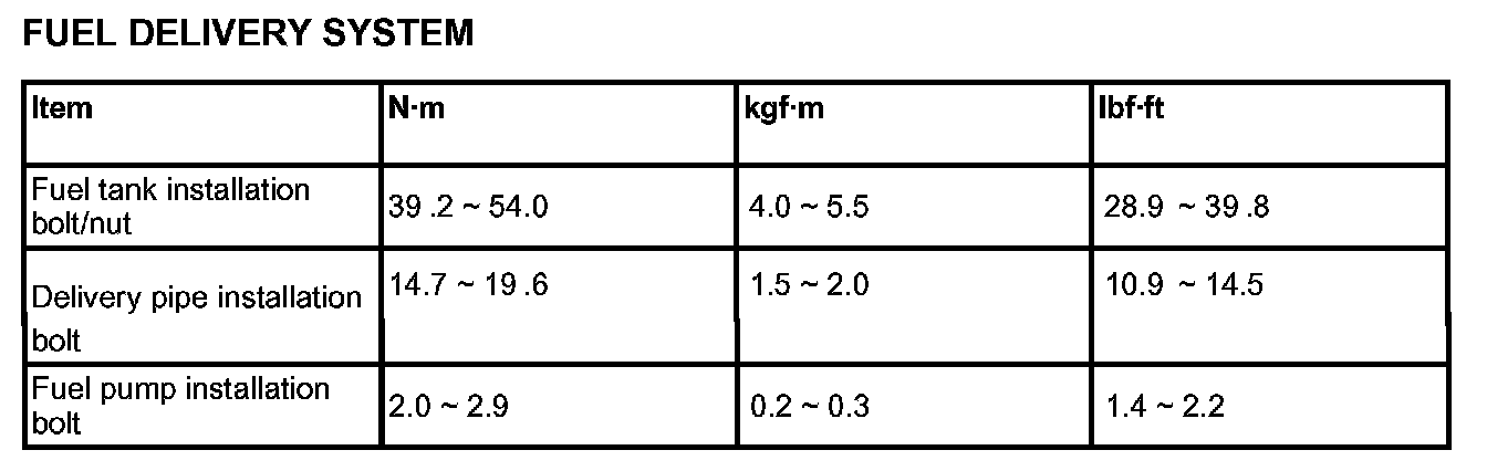 Tightening Torques - Fuel Delivery System: