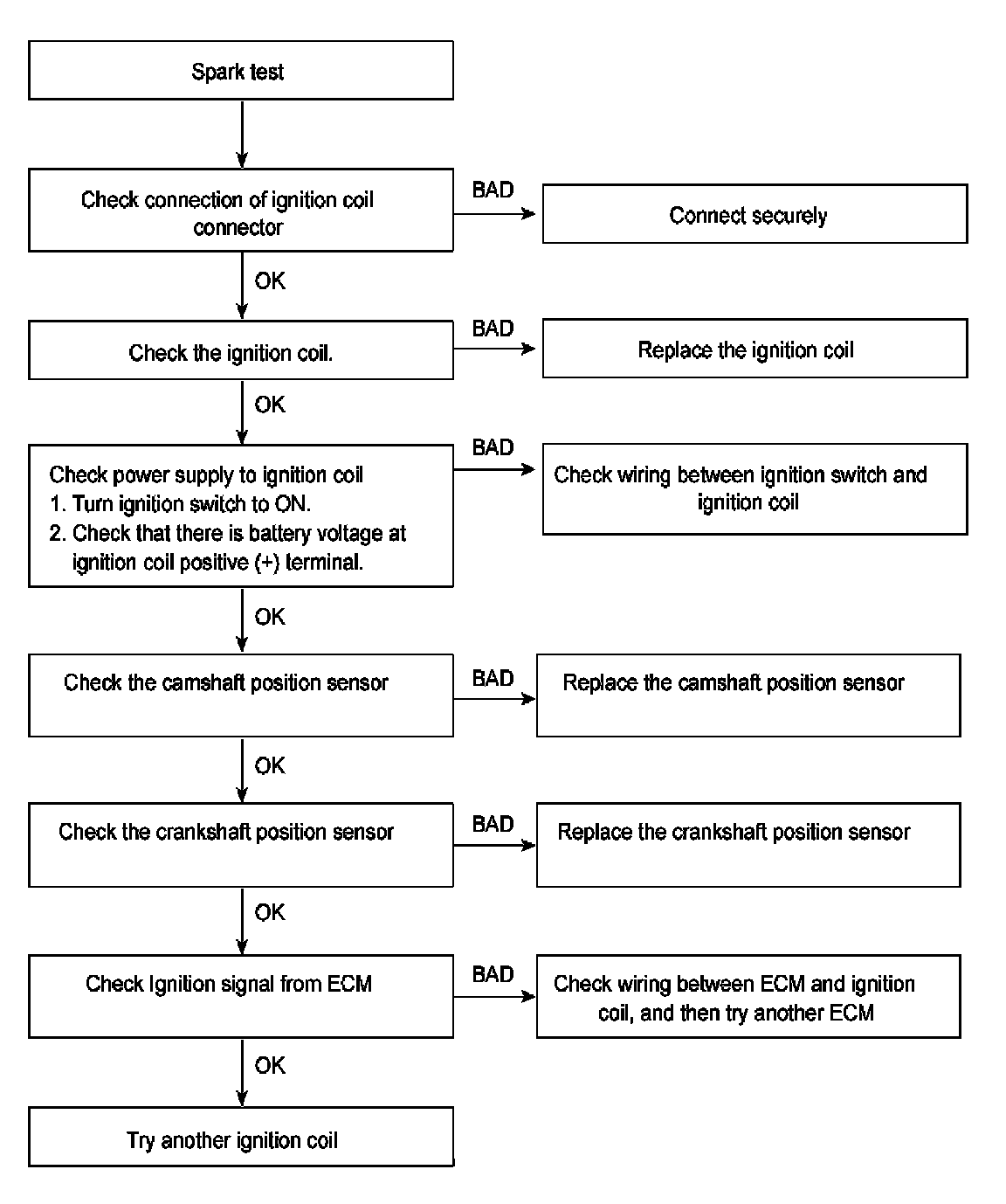 5. Check if spark occurs while engine is being cranked.