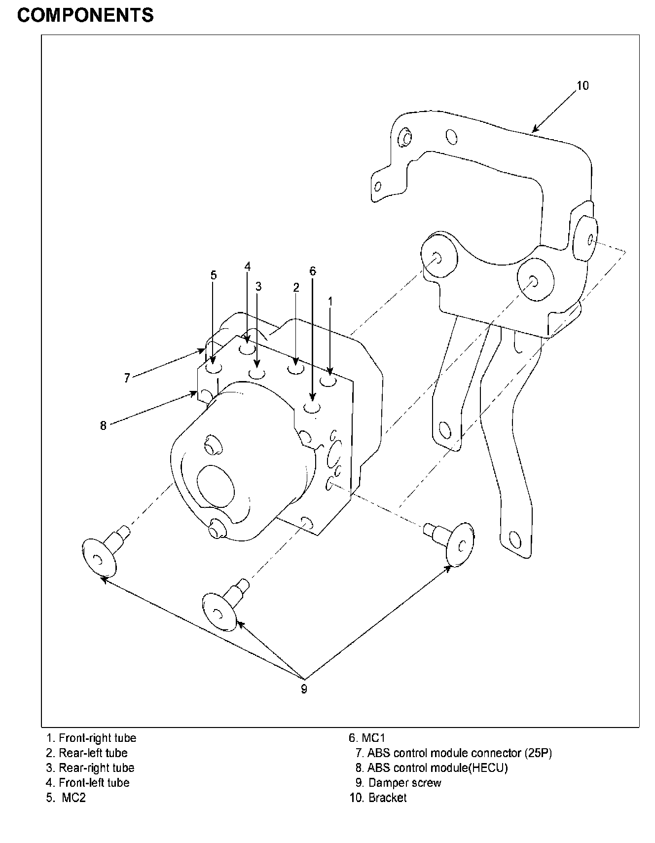 HECU damper screw: 12.36 - 14.02 Nm (1.26 - 1.43 kgf.m, 9.1 - 10.34 lb-ft)