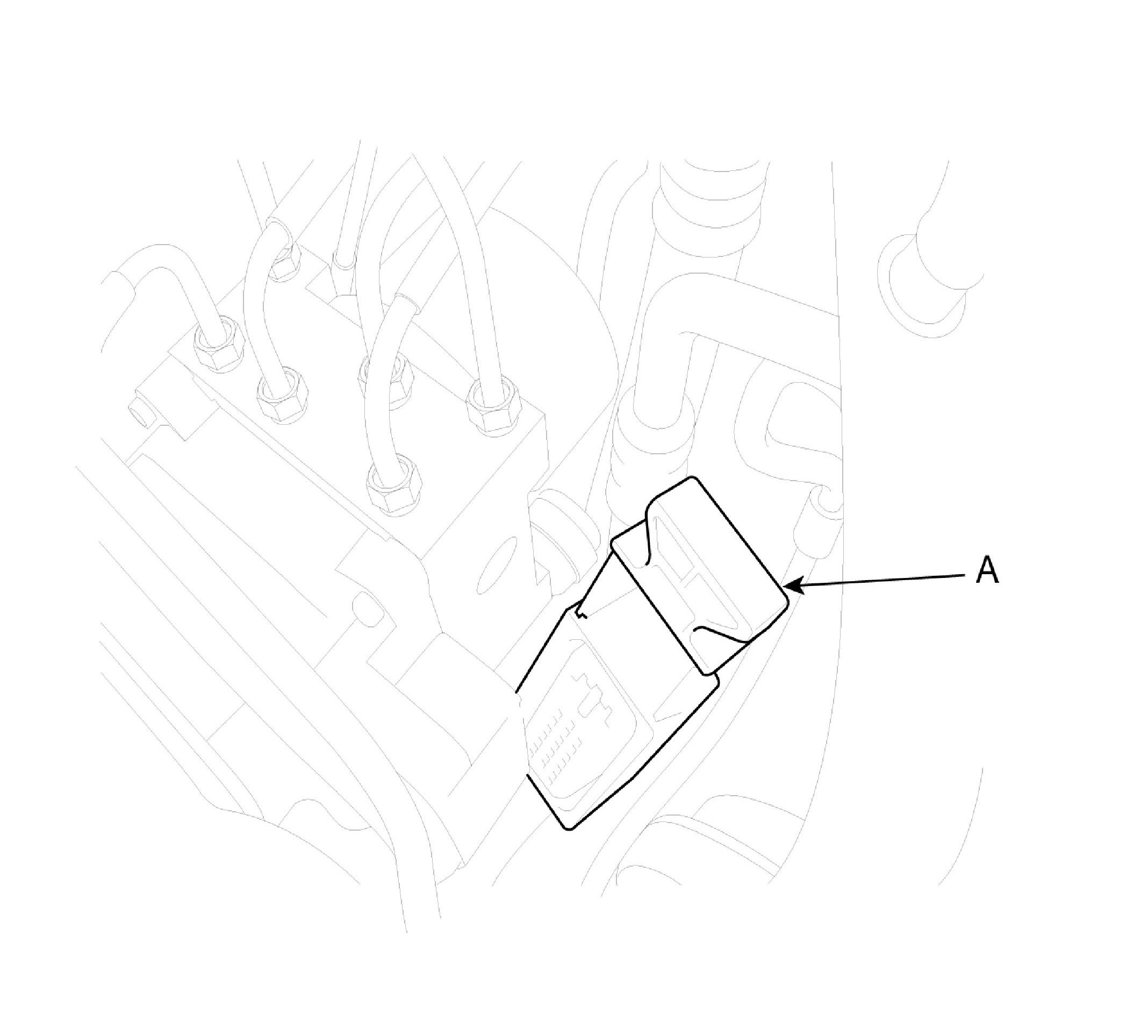 2. Pull up the lock (A) of the ABS control unit 25P connector, then disconnect the connector.
