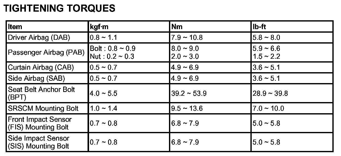 Tightening Torques: