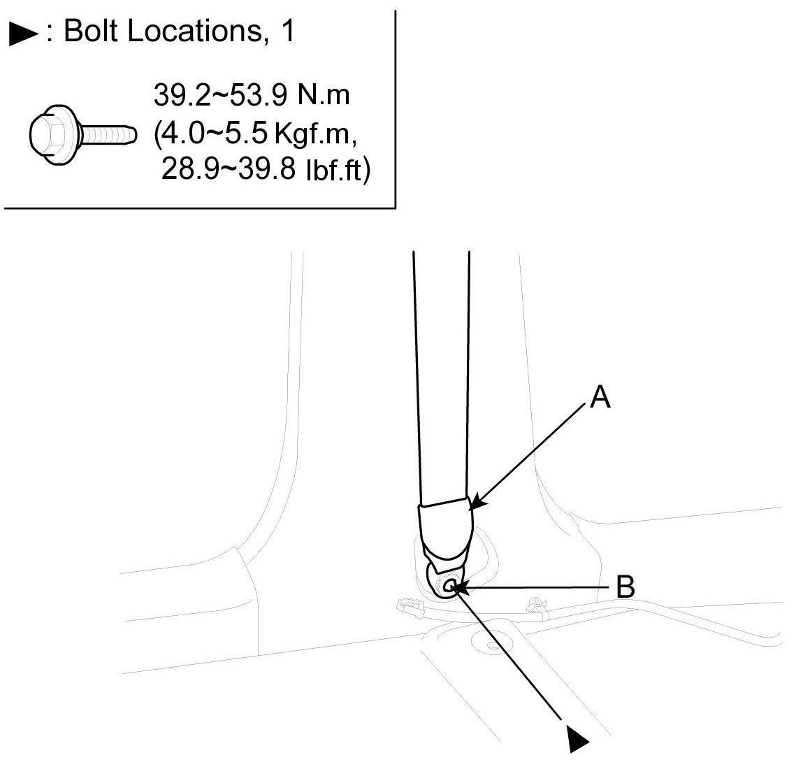 2. After raise the lower anchor cover (A), loosen the lower anchor mounting bolt (B).