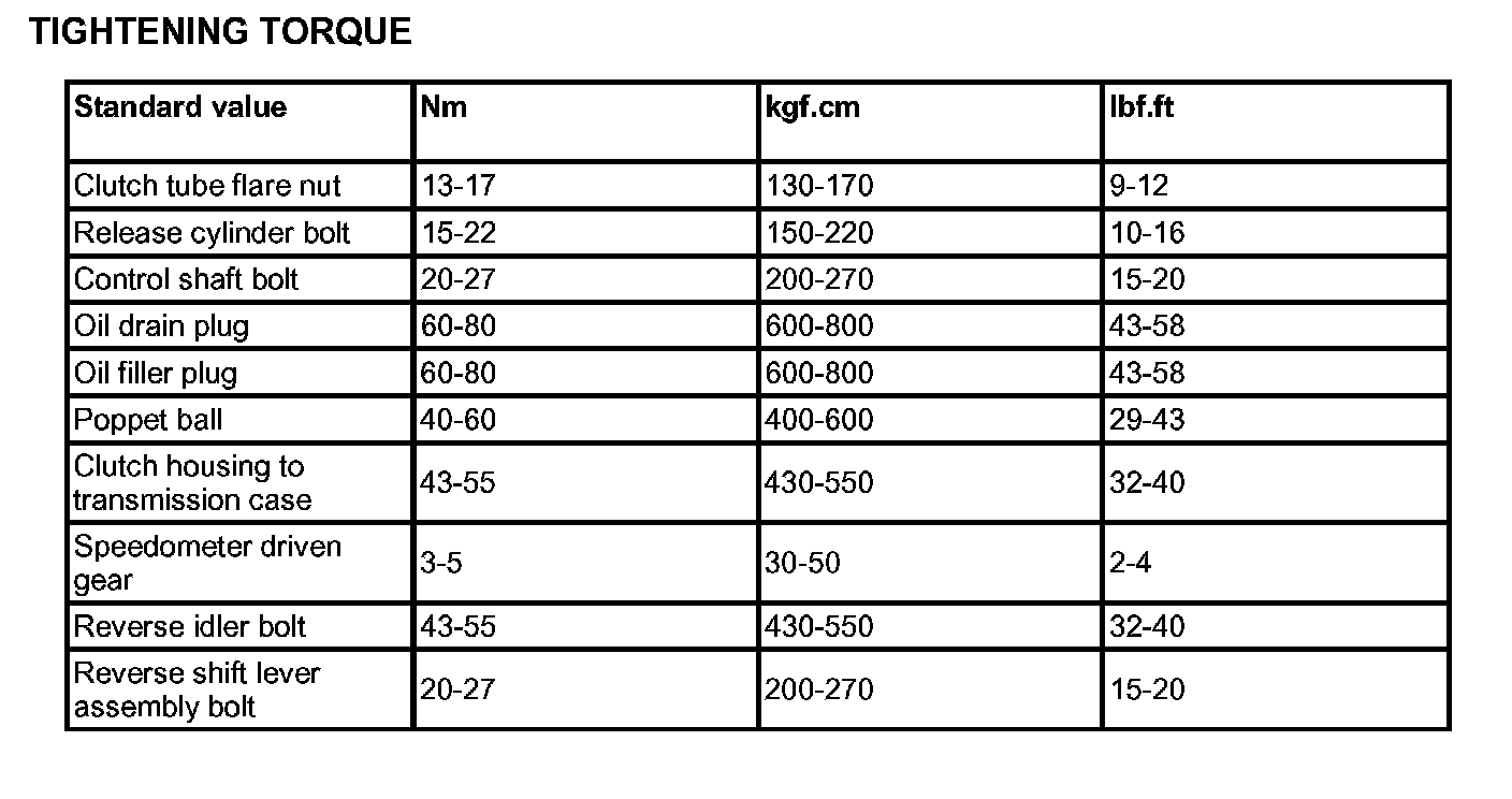 Tightening TorqueTIGHTENING TORQUE: