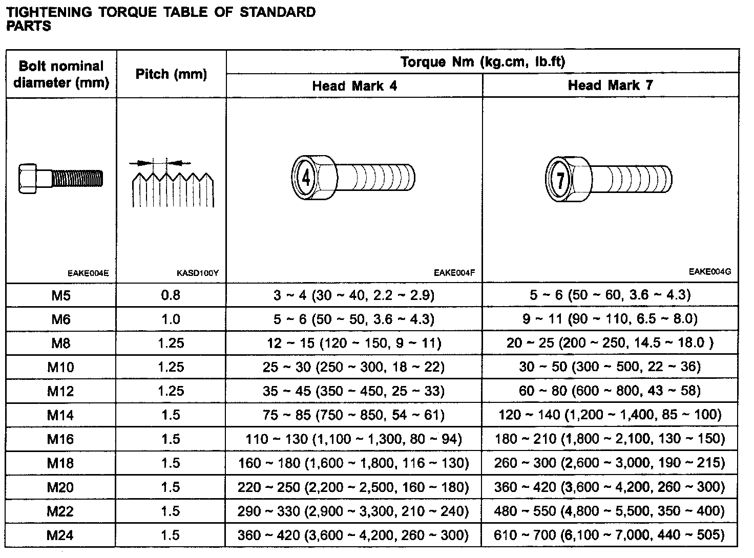 Tightening Torque Table of Standard PartsTightening Torque Table Of Standard Parts: