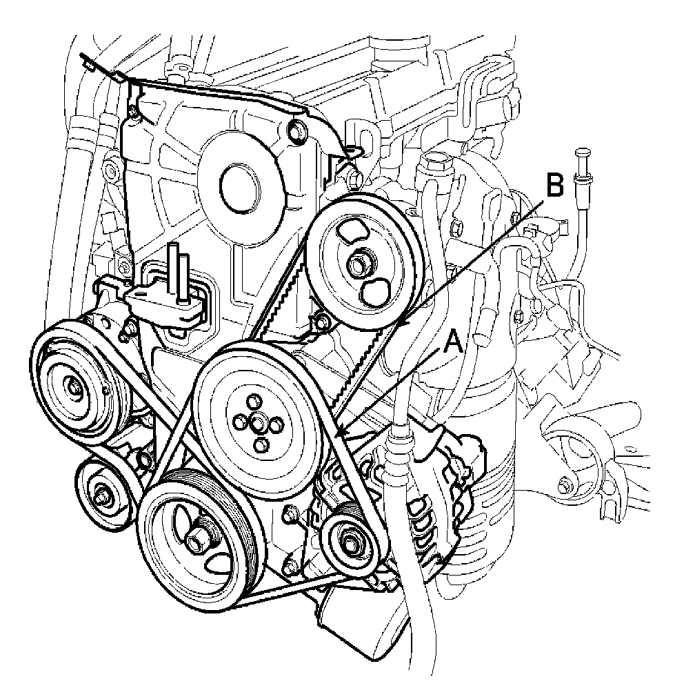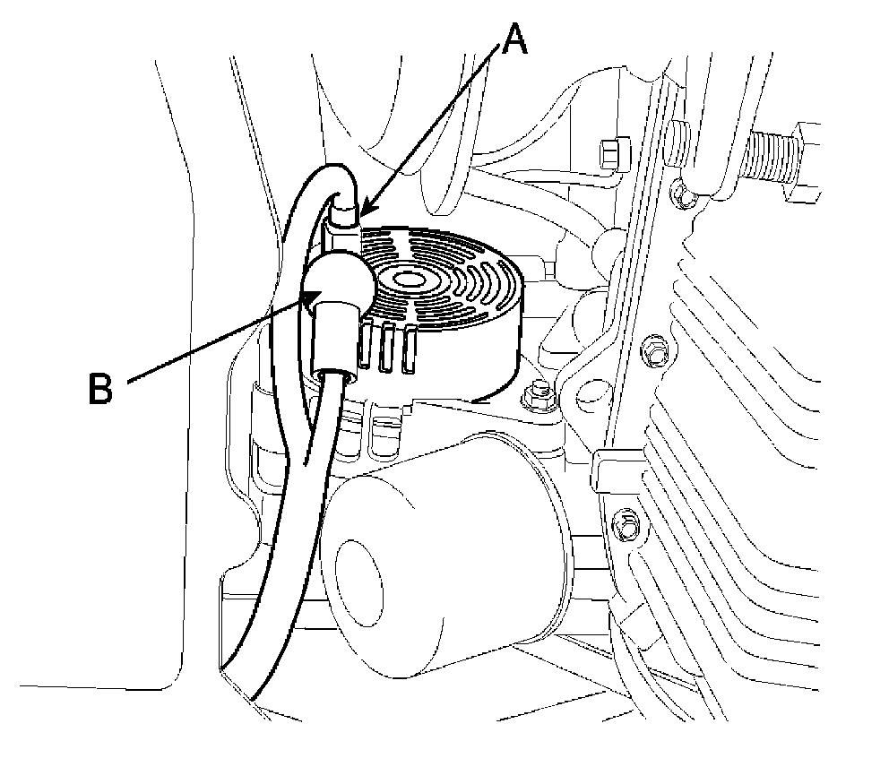 8. Disconnect the generator connector (A), and remove the cable (B) from generator "B" terminal.