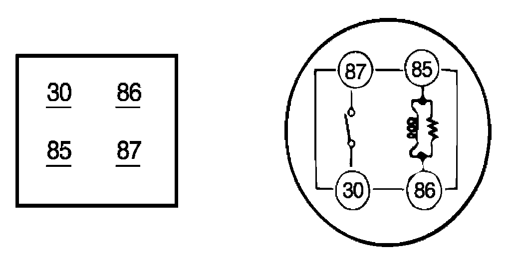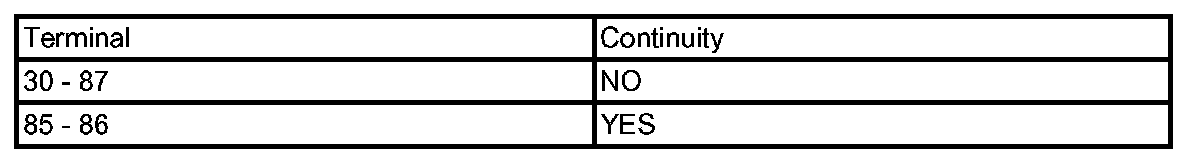 4. Apply 12 V to terminal 85 and ground to terminal 86. Check for continuity between terminals 30 and 87.