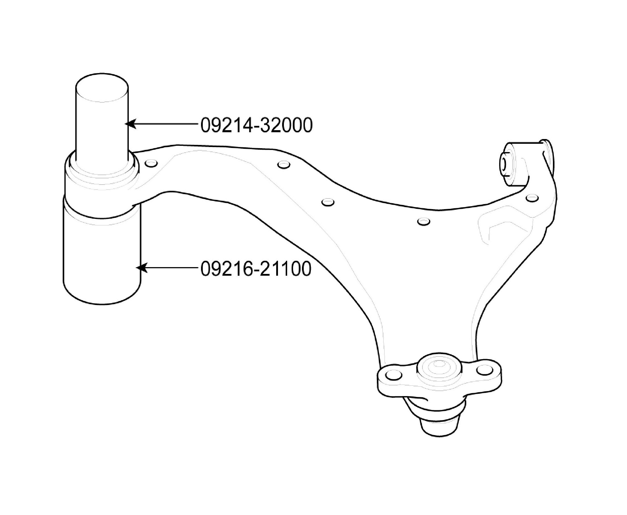 3. Using the special tools (09214-32000 & 09216-21100), install the busing on the lower arm.