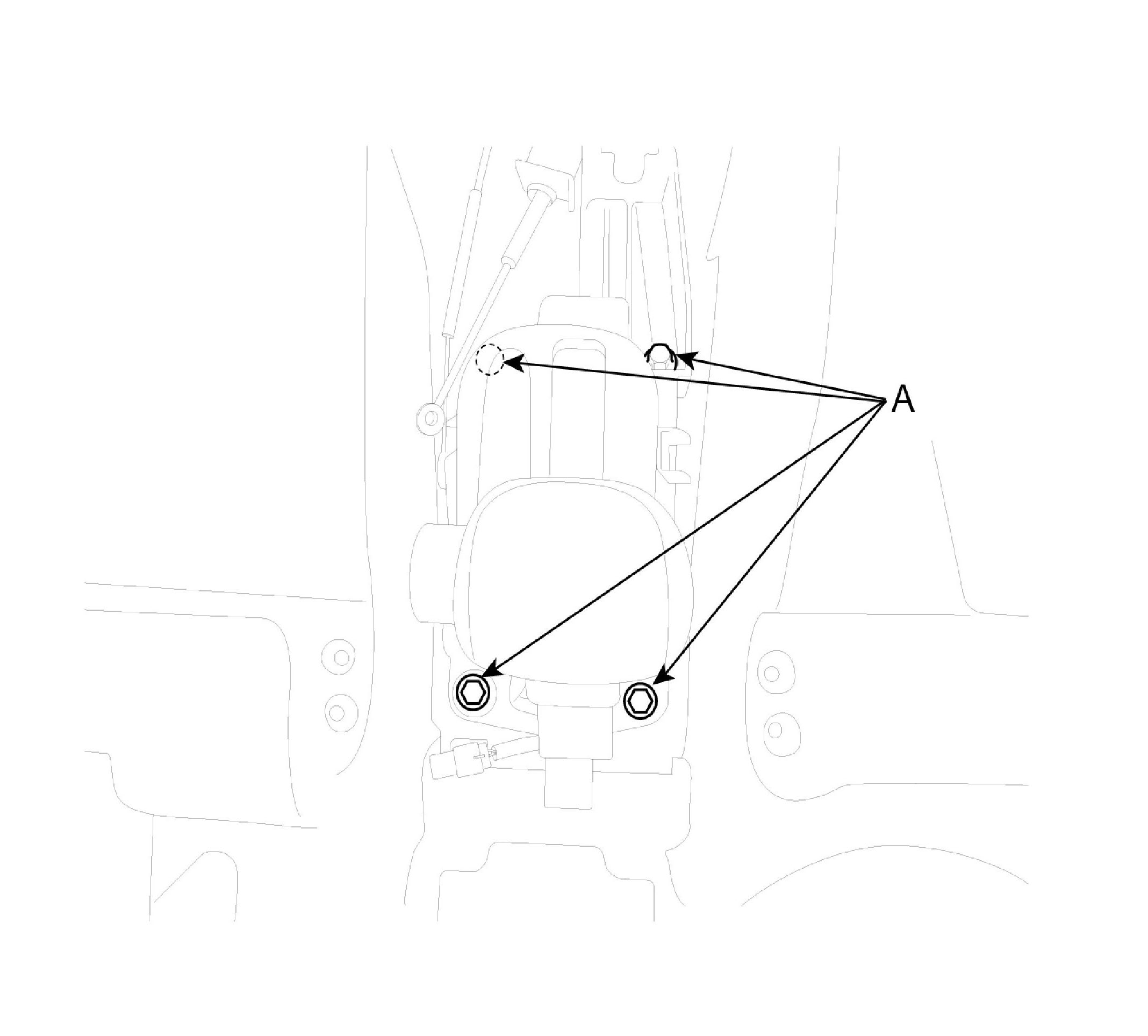 4. Remove the center console mounting bolts (A, B) and remove the center console.