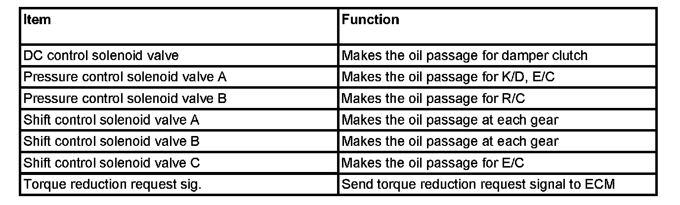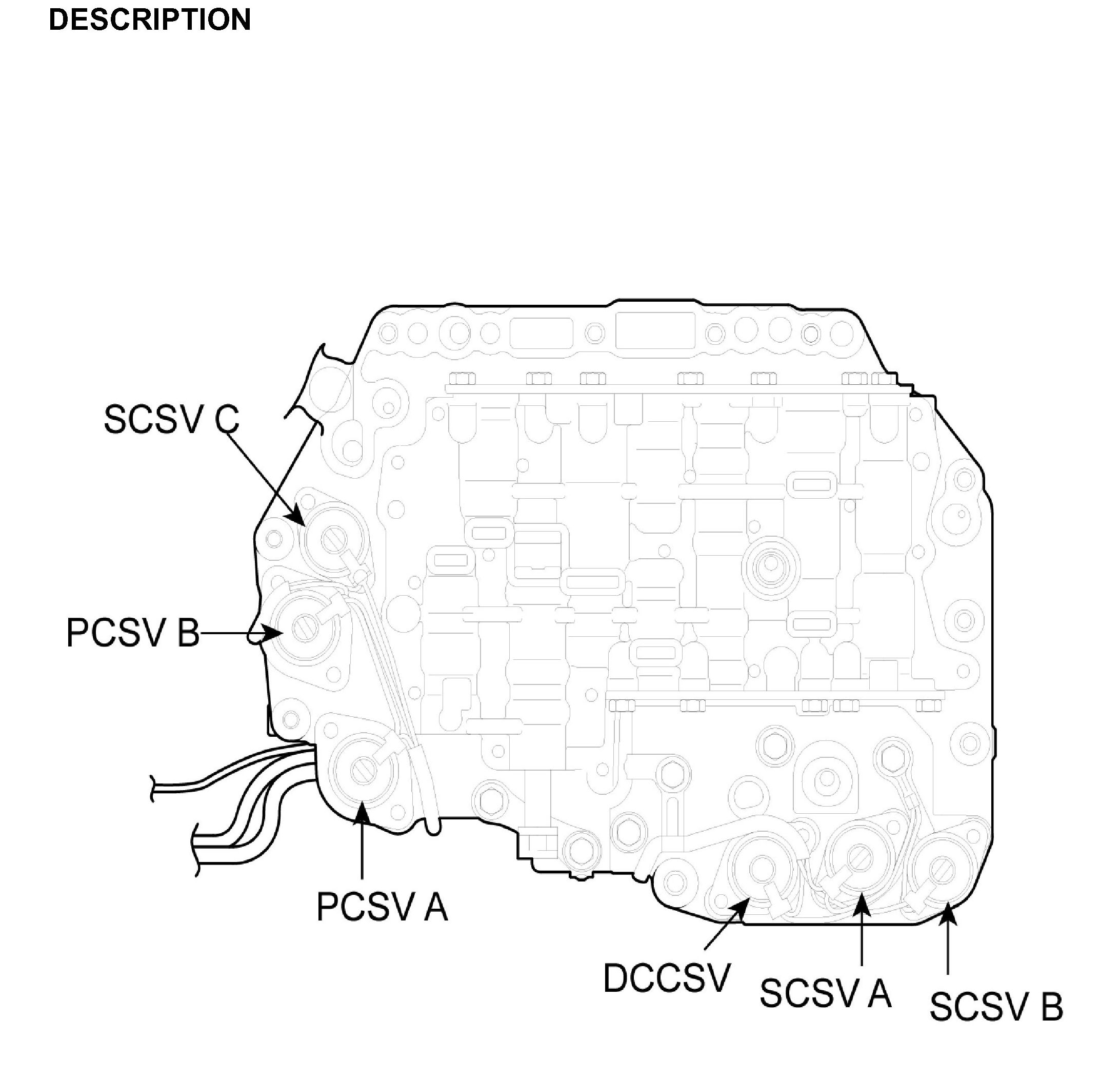 - Damper Clutch Control Solenoid Valve (DCCSV): Controlled by the PCM. A damper clutch operates by the DCCSV.