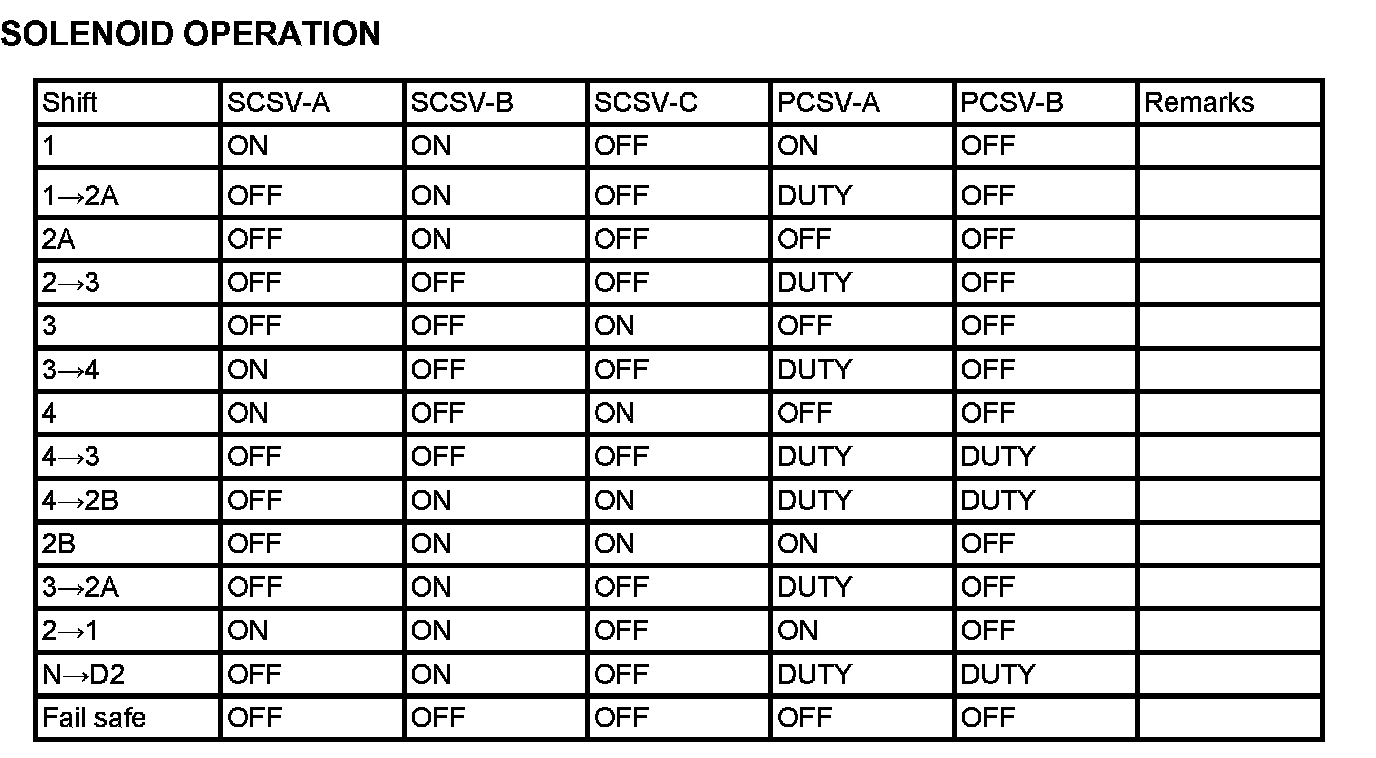 - Shift Control Solenoid Valve-B (SCSV-B): Controlled by the PCM. It operates at 1st / 2nd gear.
