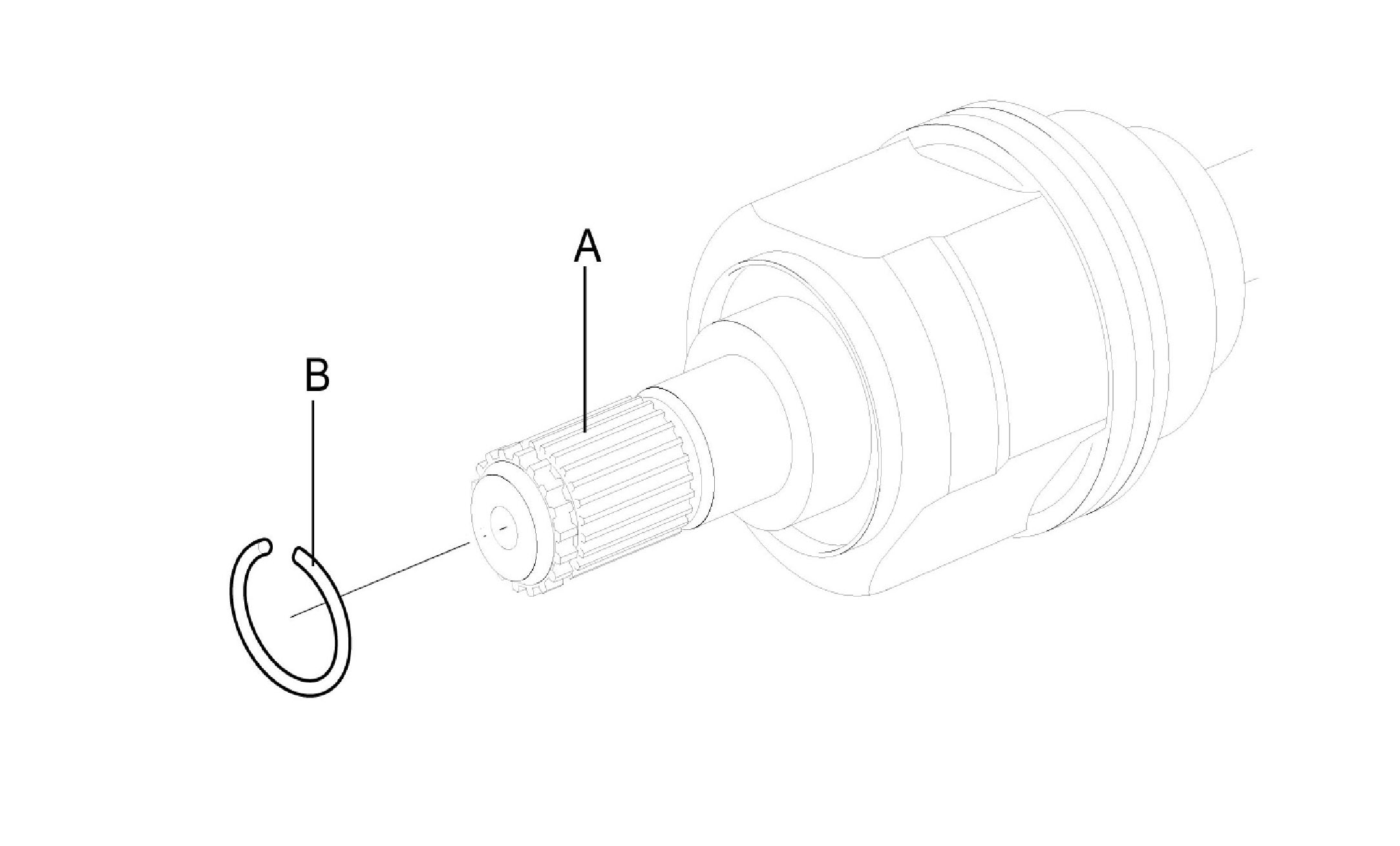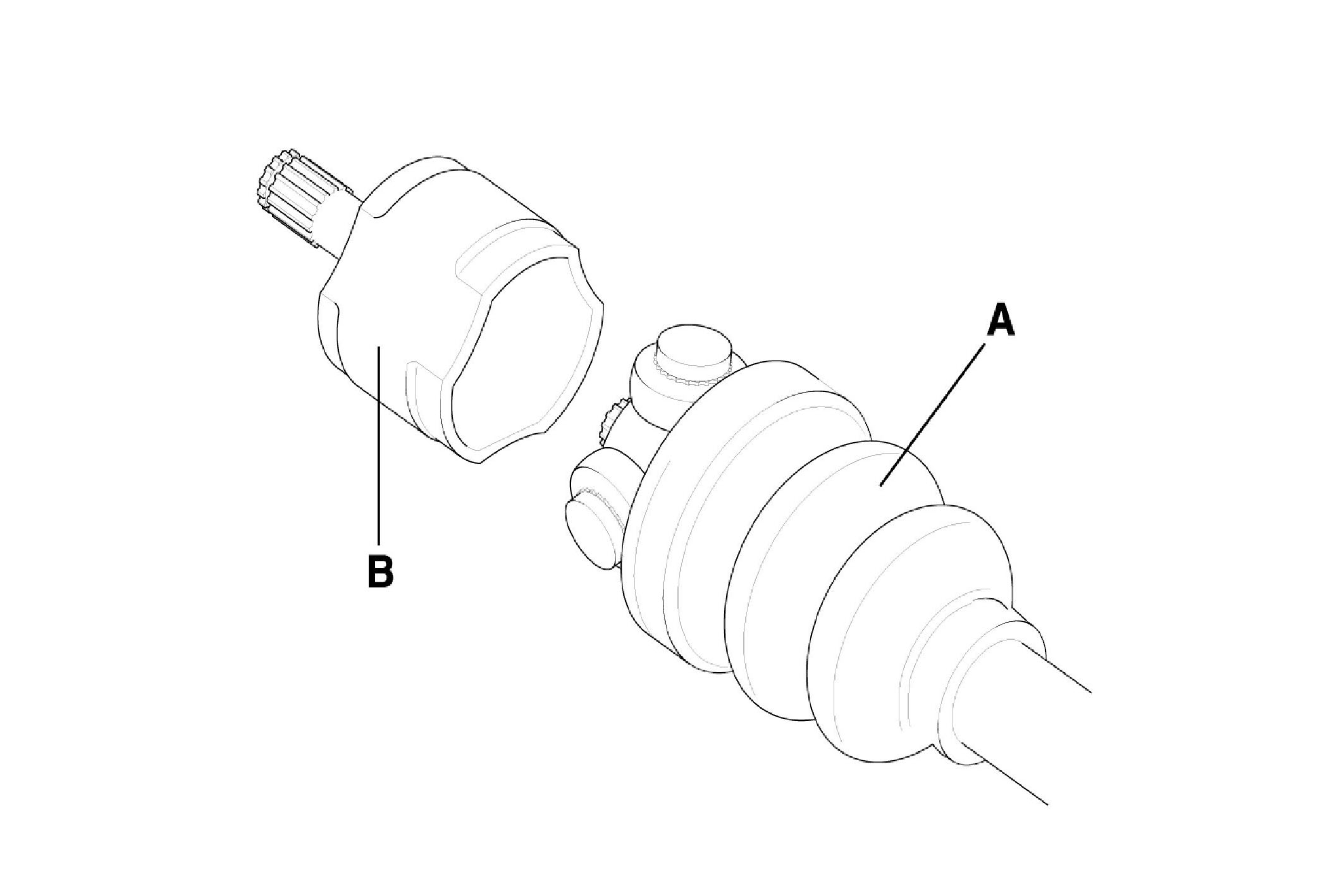 1. Remove the clip (B) from drive shaft splines (A) of the transaxle side.