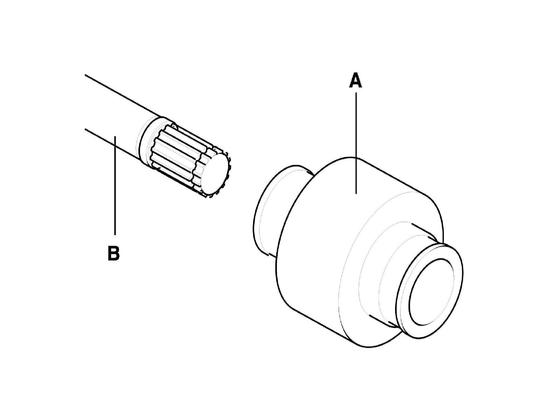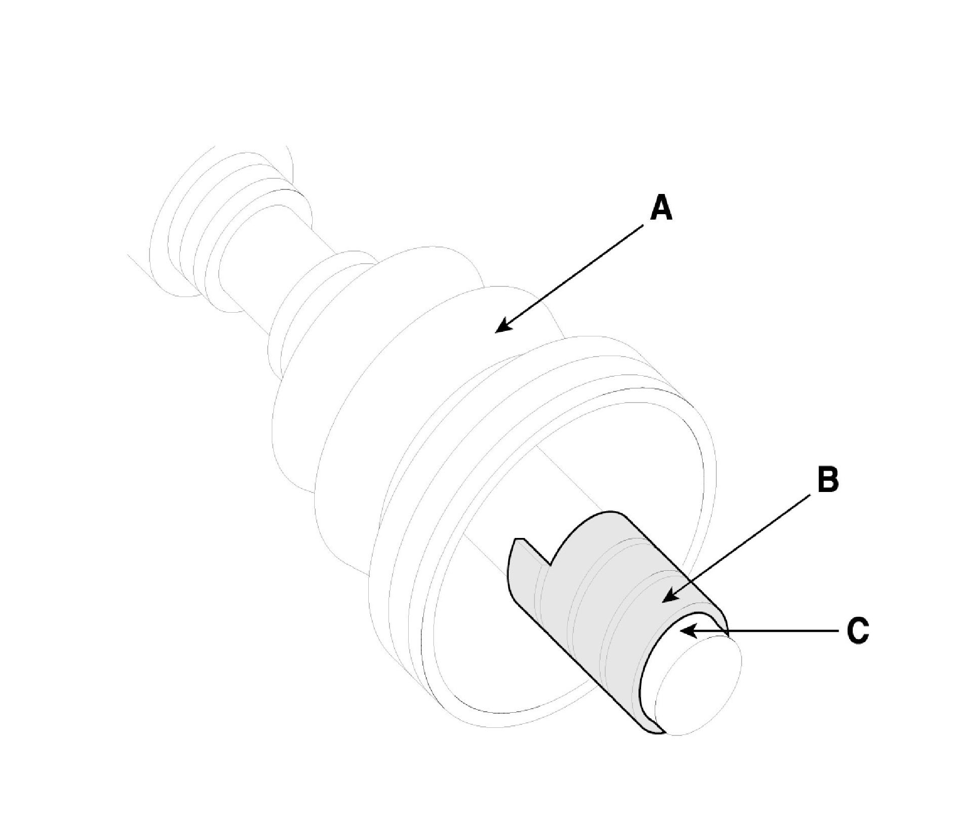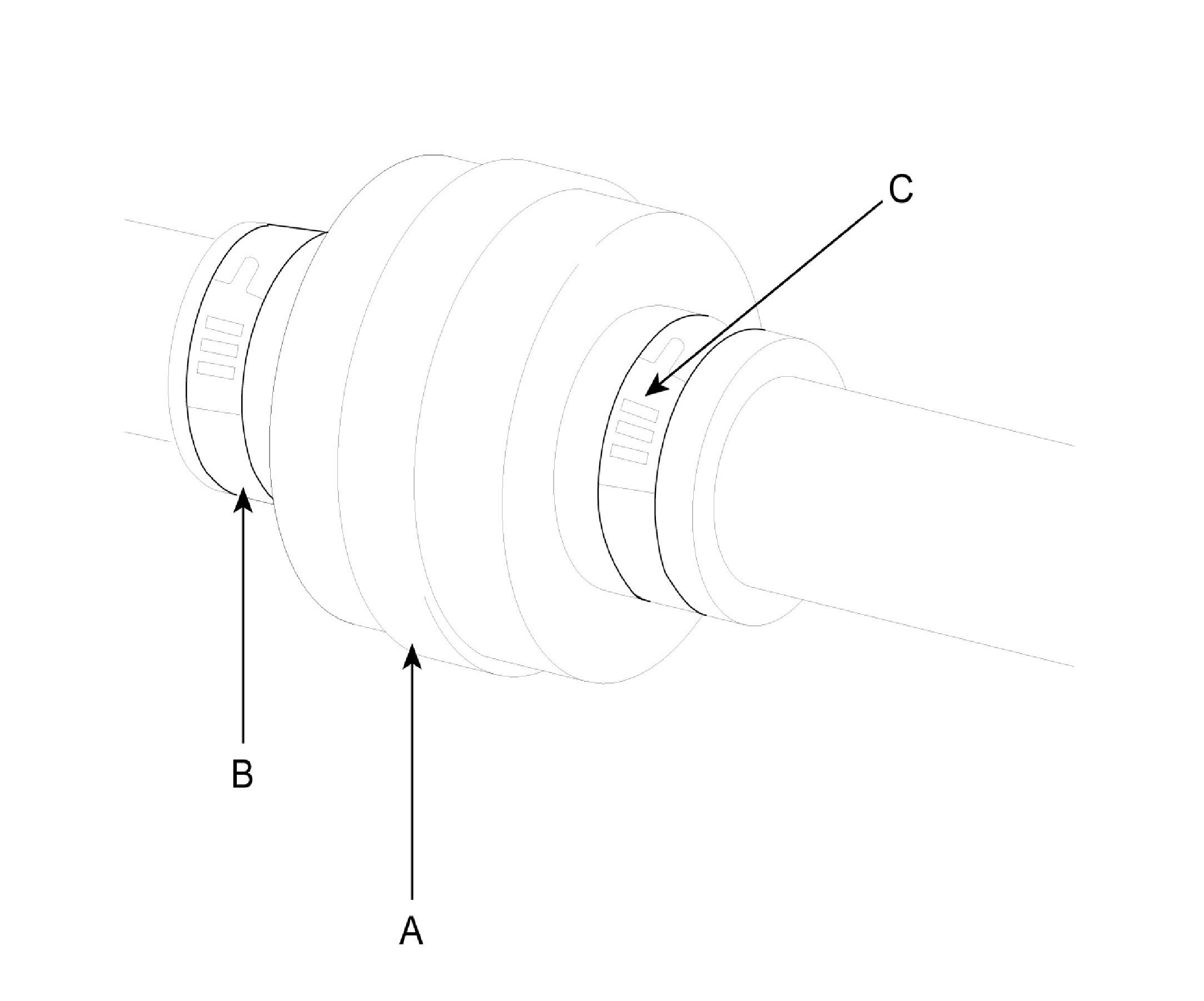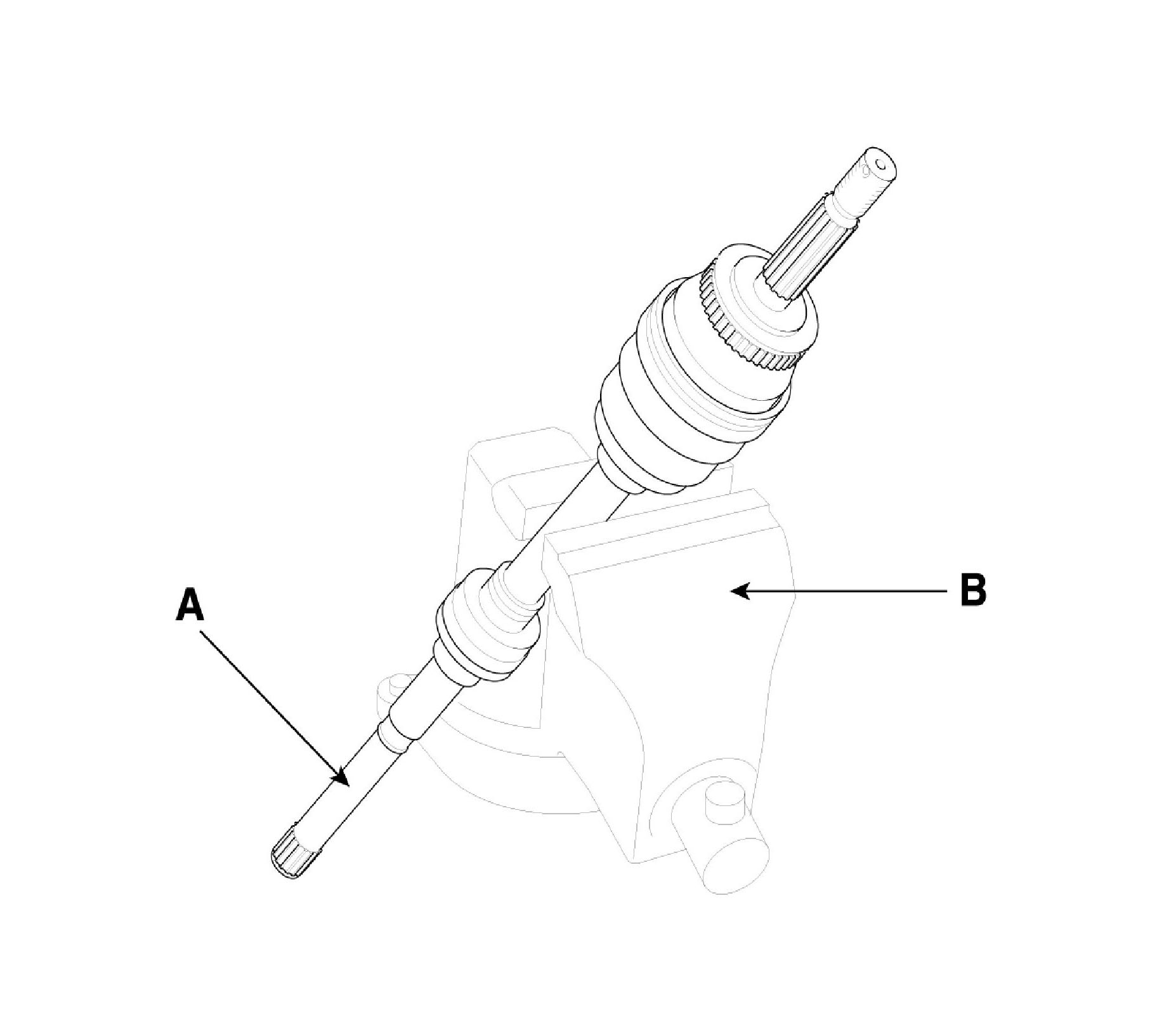 ^ According to illustration below, put across spider assembly (A), UTJ case (B), and shaft splines (C) to aid in reassembly.