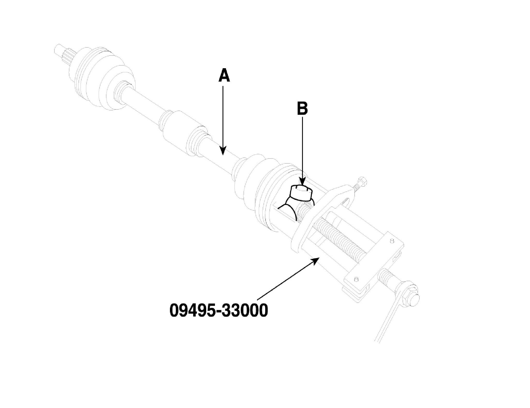 6. Remove the spider assembly (B) from drive shaft (A) by using the Special Tool (09495-33000).