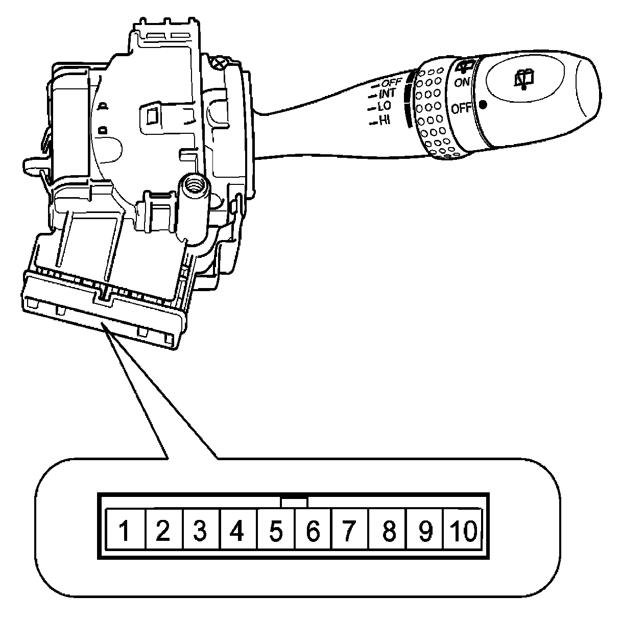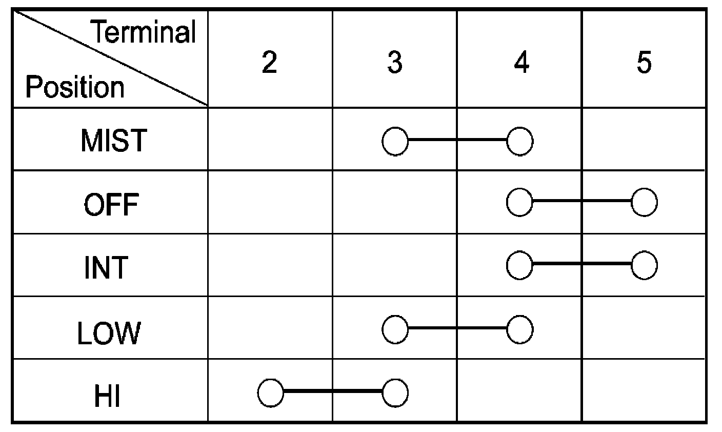 Check for continuity between the terminals while operating the wiper and washer switch. If it is not normal condition, replace wiper and