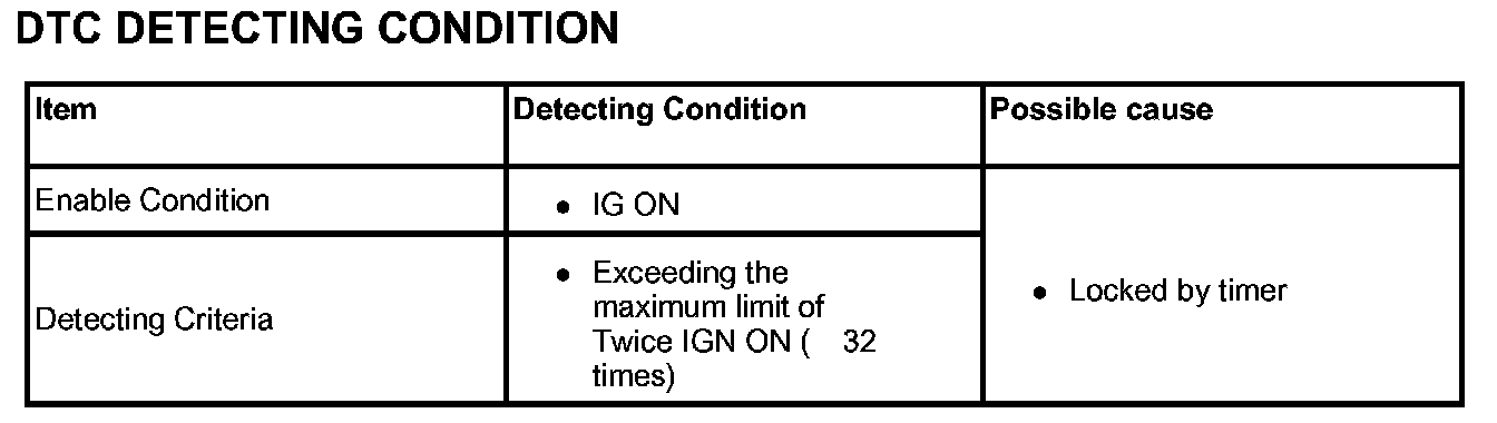 This DTC indicates that starting time of twice ignition 'ON' exceed the maximum limit.