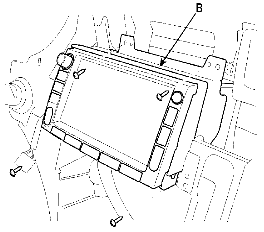 5. Remove the mounting screws then remove the audio unit (B).