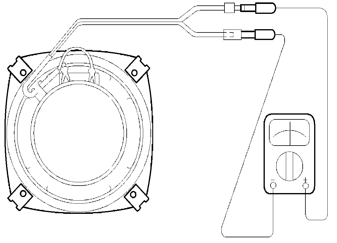 INSPECTION1. Check the speaker with an ohmmeter. If an ohmmeter indicates the correct impedance of the speaker when checking between the speaker (+) and speaker (-) of the same channel, the speaker is ok.