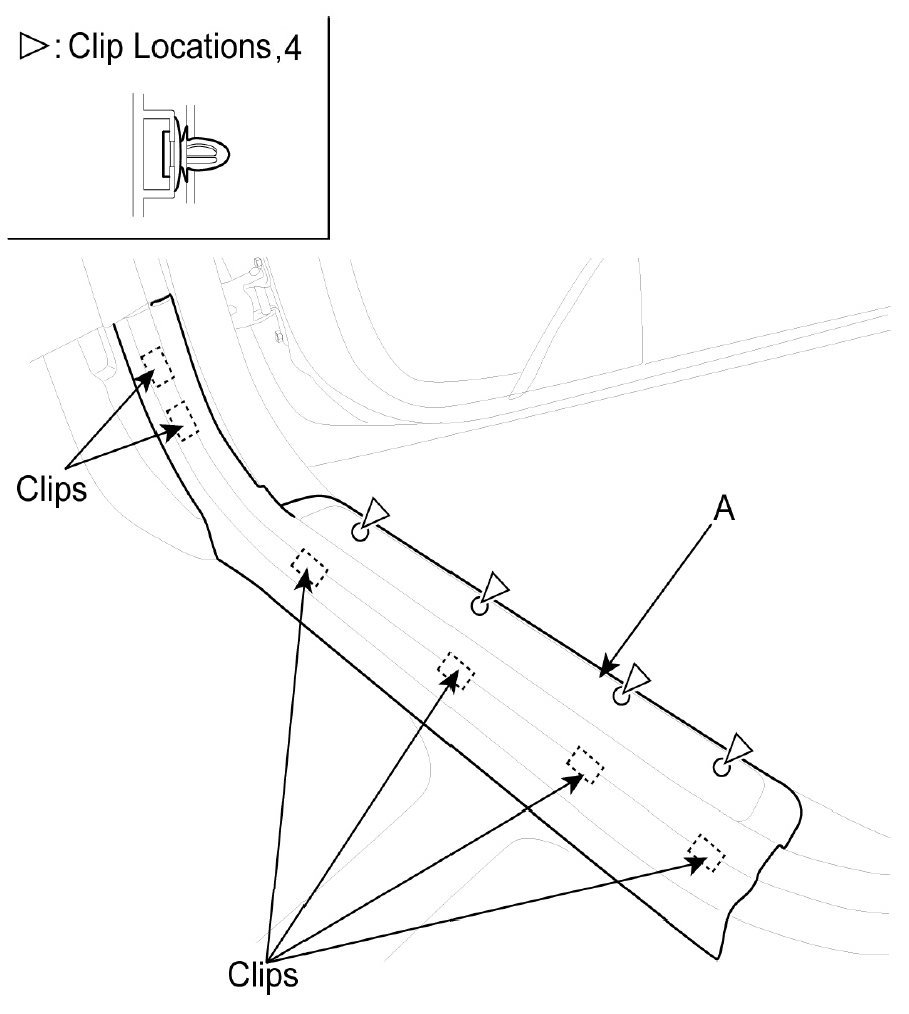 1. Remove the front door scuff trim (A).