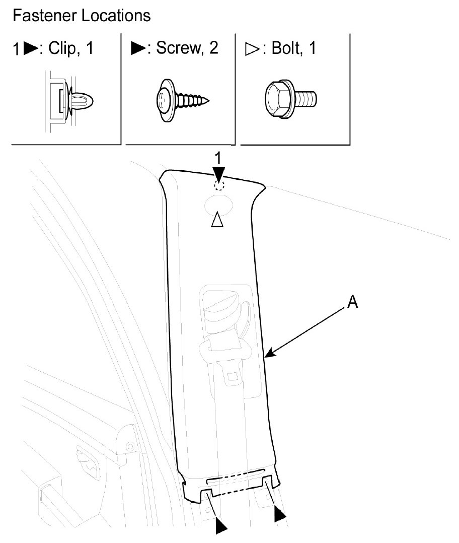 2. Remove the center upper pillar trim (A).