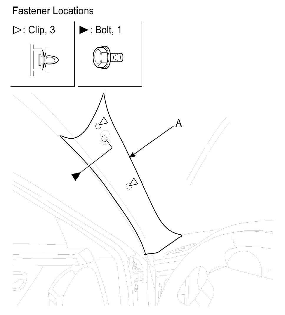 1. Remove the front pillar trim (A).