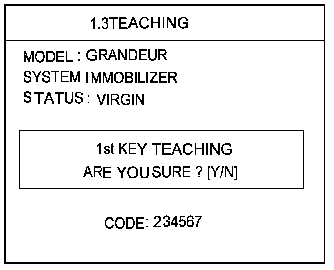 The procedure starts with an PCM(ECM) request for vehicle specific data (PIN code: 6digits) from the tester. The "virgin" PCM(ECM) stores the vehicle specific data and the key teaching can be started. The "learnt" PCM(ECM) compares the vehicle specific data from the tester with the stored data. If the data are correct, the teaching can proceed.