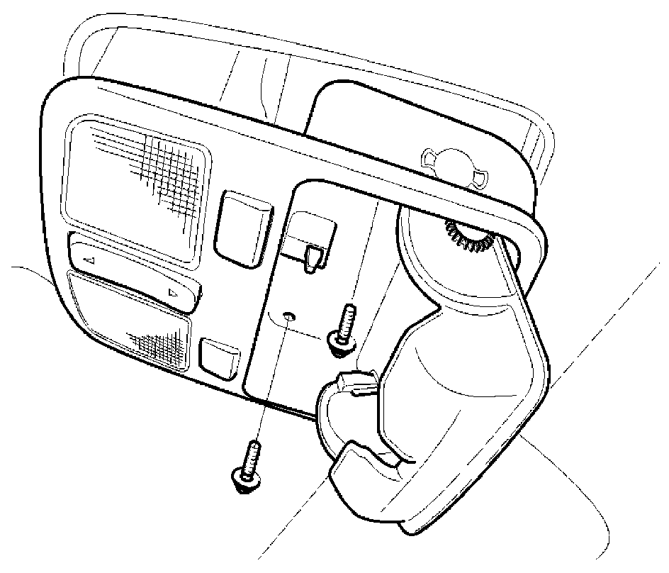 2. Open the sunglass case cover from the overhead console then remove the 2 screws holding the overhead console. Disconnect the connector then remove the overhead console lamp assembly from the headliner.
