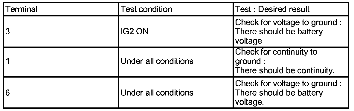 2. Apply the battery voltage to terminal 3, 6 and ground the terminal 1.