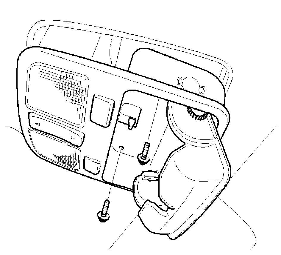2. Open the sunglass case cover from the overhead console then remove the 2 screws holding the overhead console.