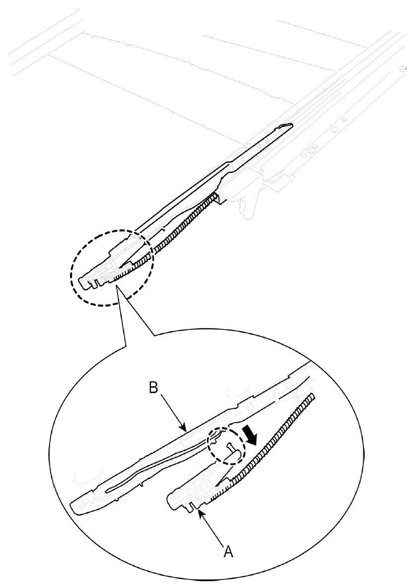 3. Remove a guide assembly (A) after lowering a guide thoroughly by pushing a slide (B) to rear.