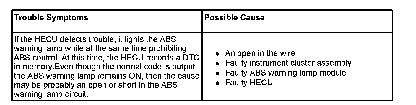 Even After The Engine Is Started, The ABS Warning Lamp Remains ONDETECTING CONDITION: