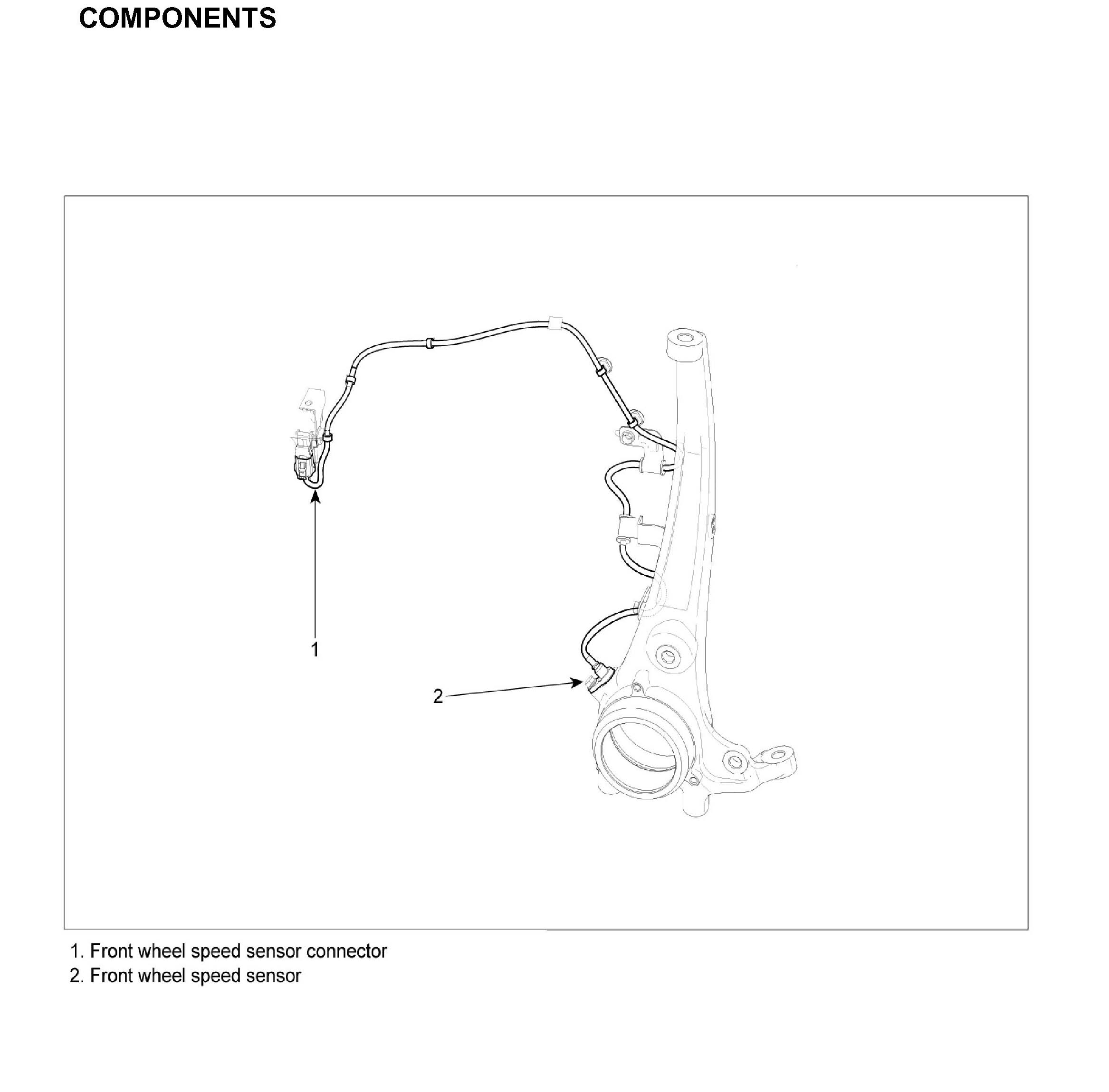 4. Remove the front wheel speed sensor after disconnecting the wheel speed sensor connector (A).