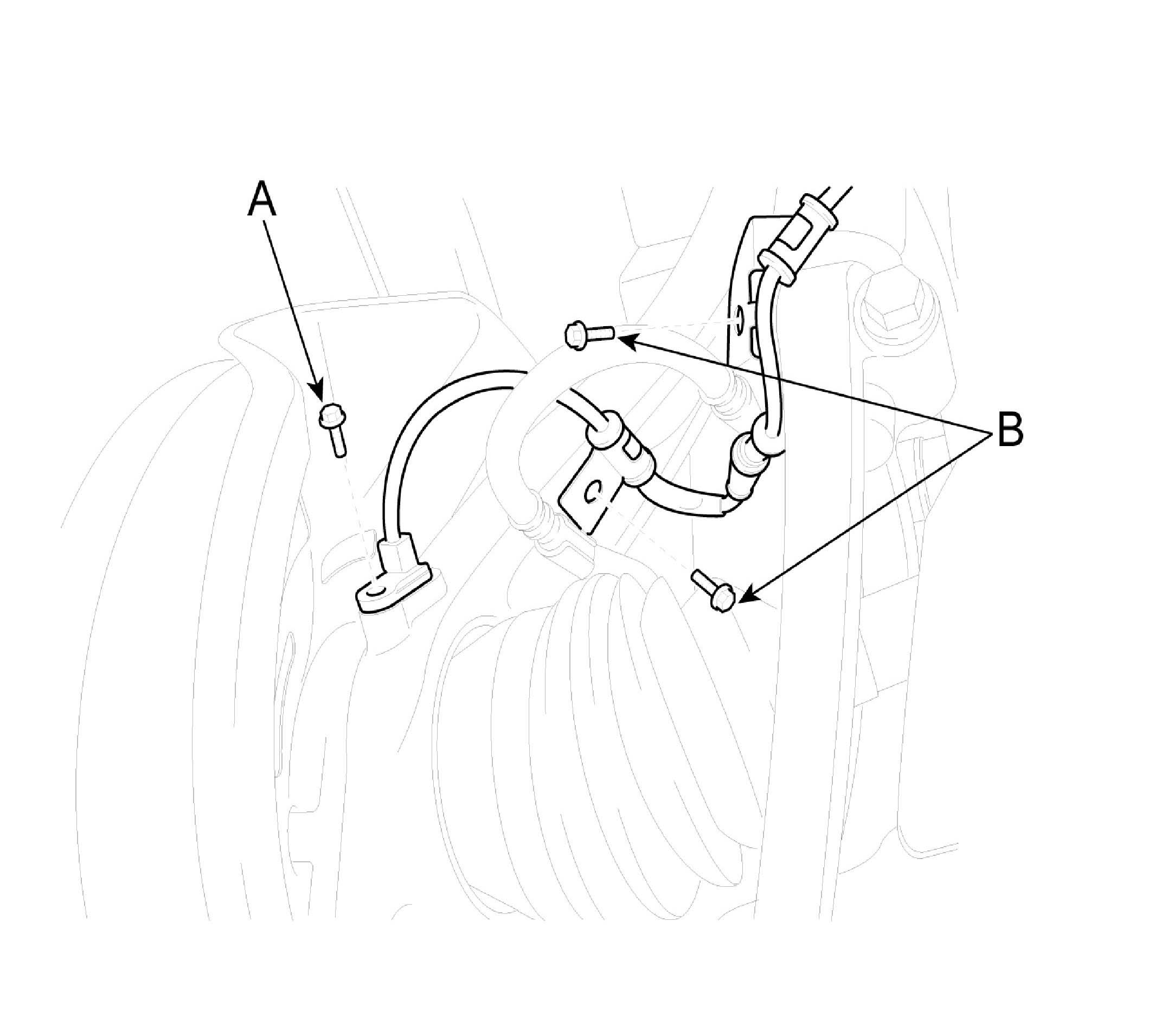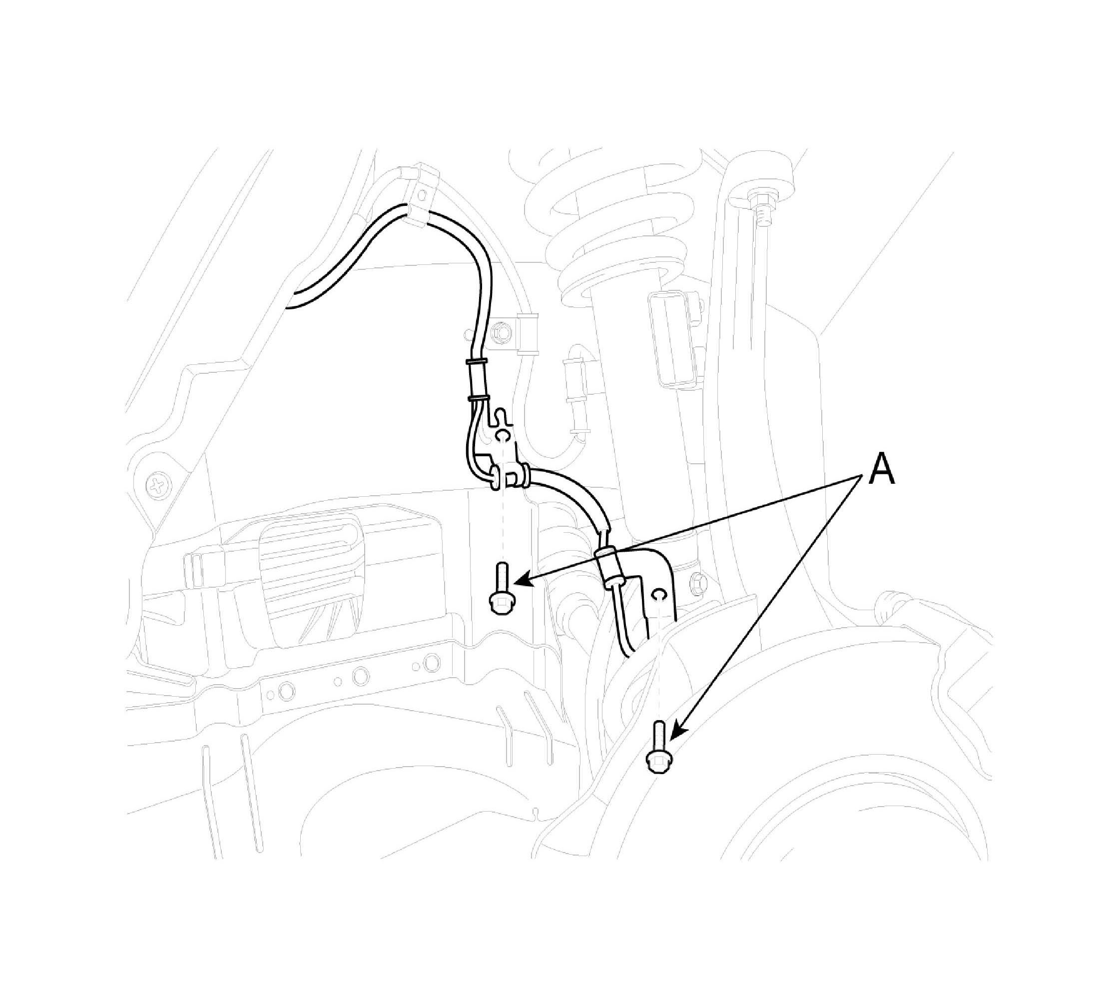1. Remove the front wheel speed sensor mounting bolt (A).