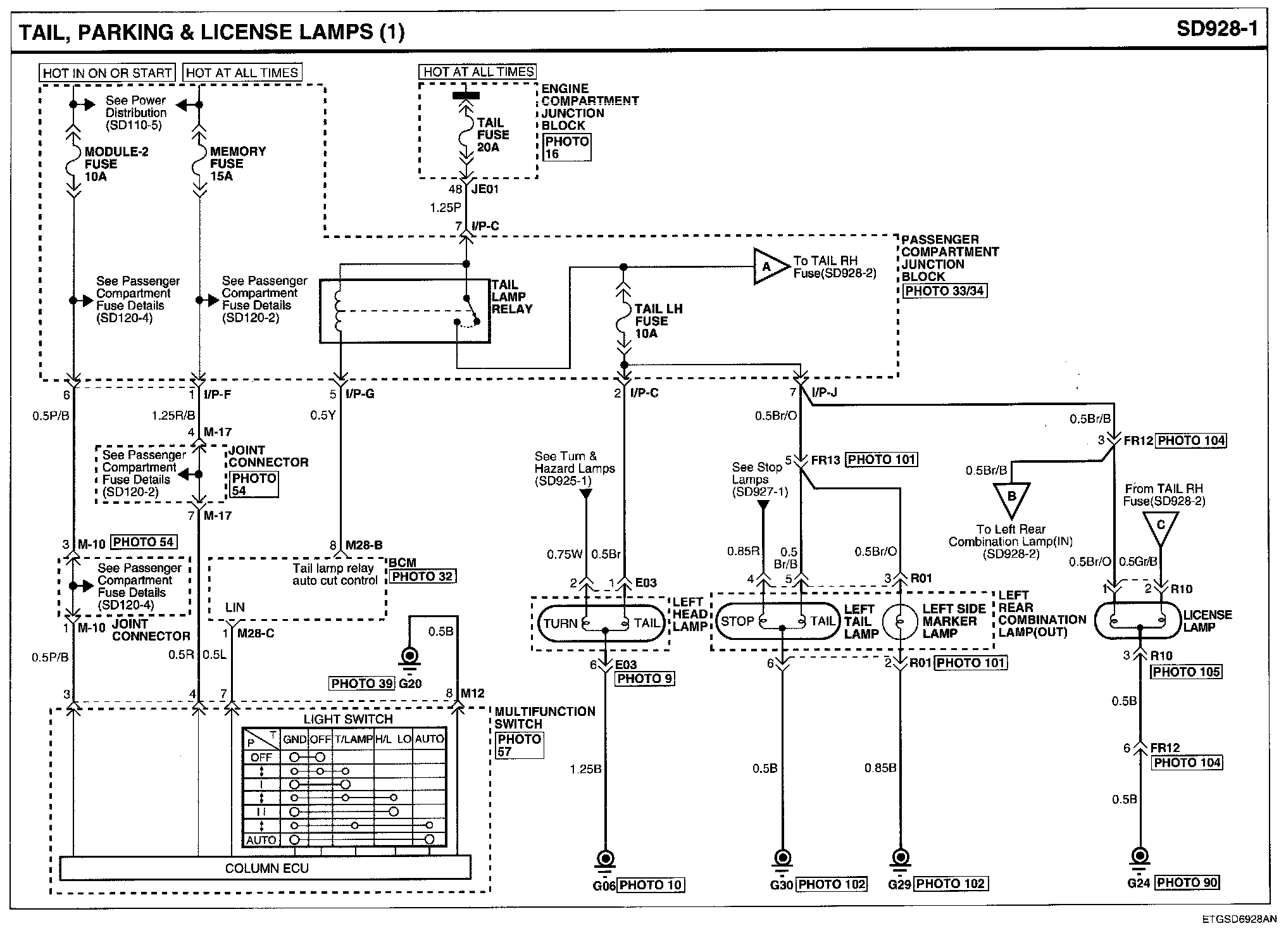 Locations: Location photographs (references to PHOTOS) referred to within these diagrams can be found via the photo number at the vehicle level under Locations by Photo Number. Component Locations