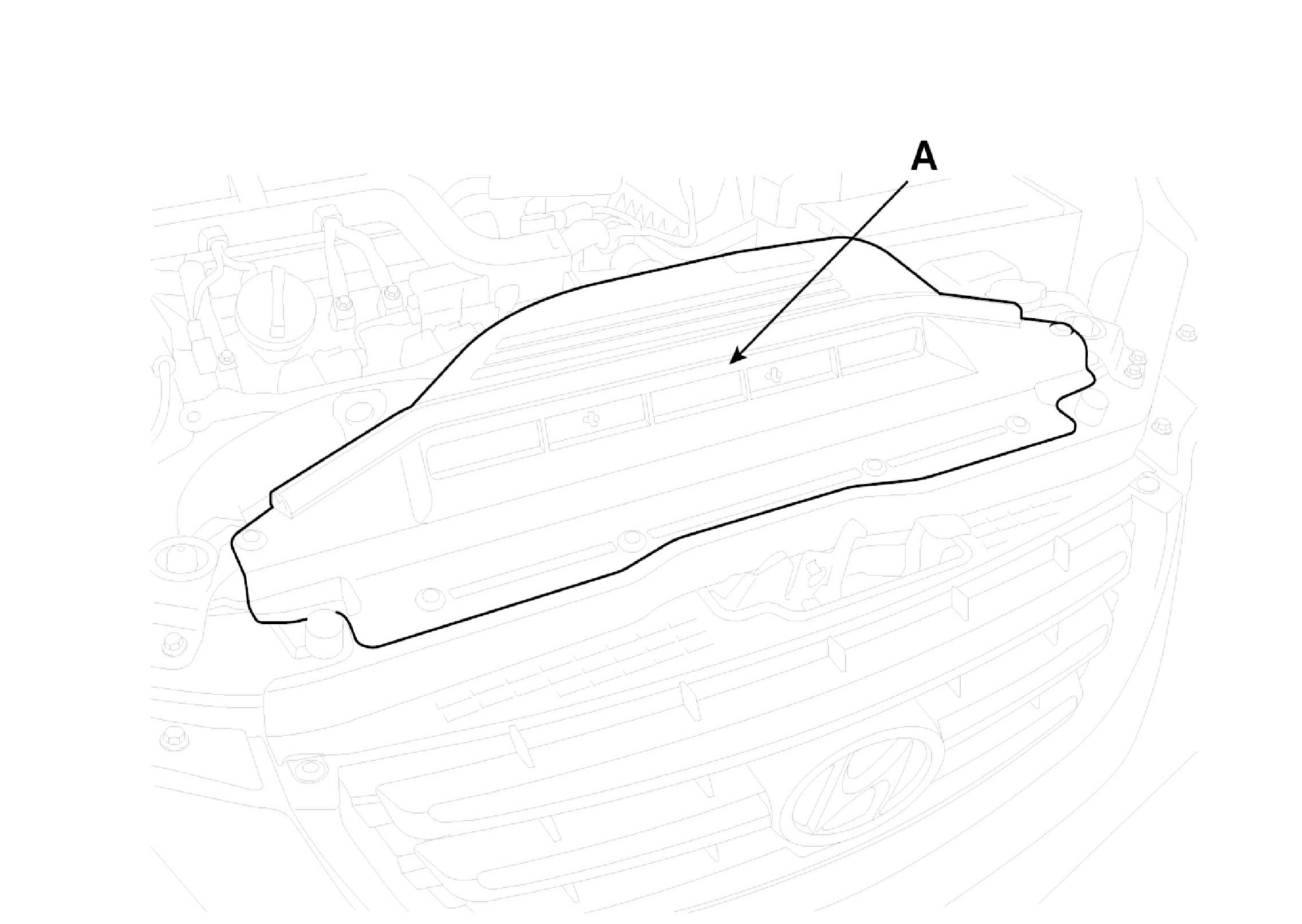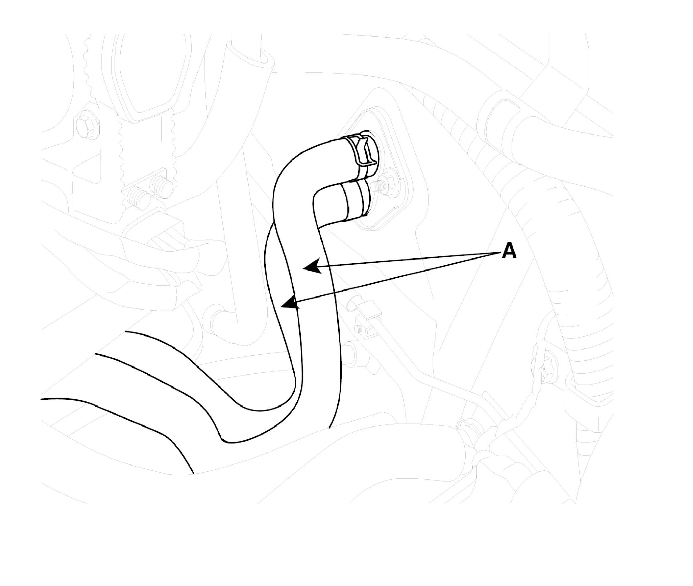 9. Remove the upper radiator hose and lower radiator hose (A).