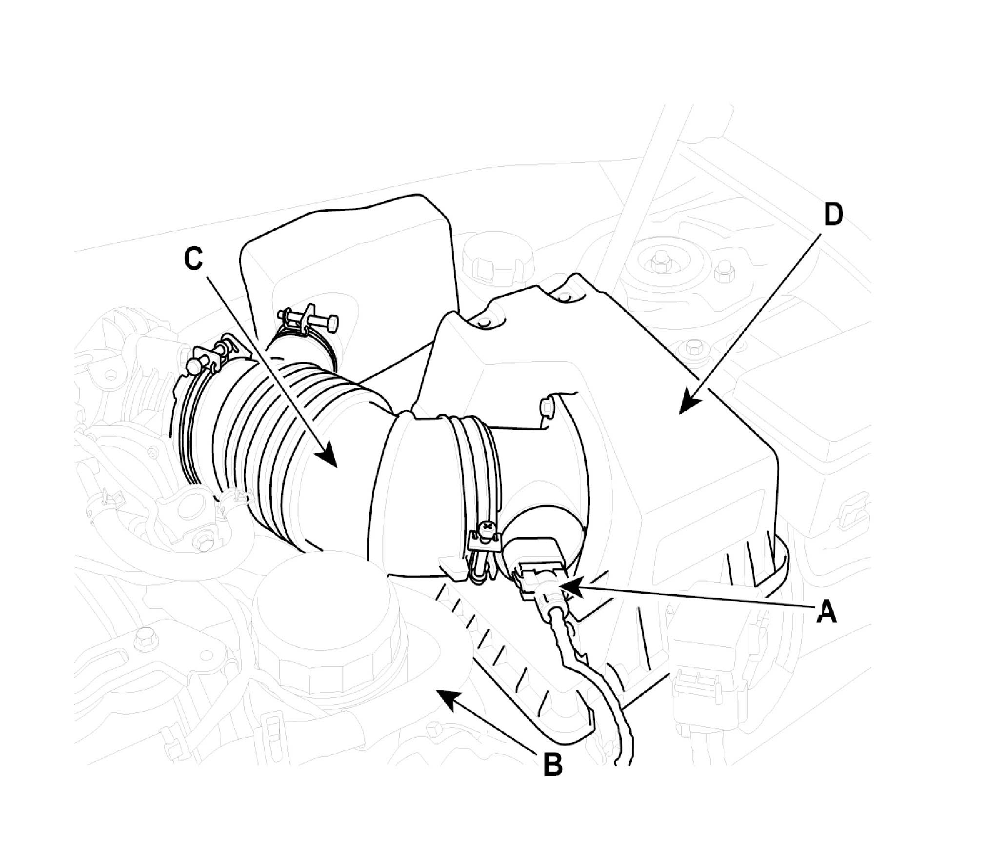 D. Remove the intake air hose(C) and air cleaner upper cover (D).