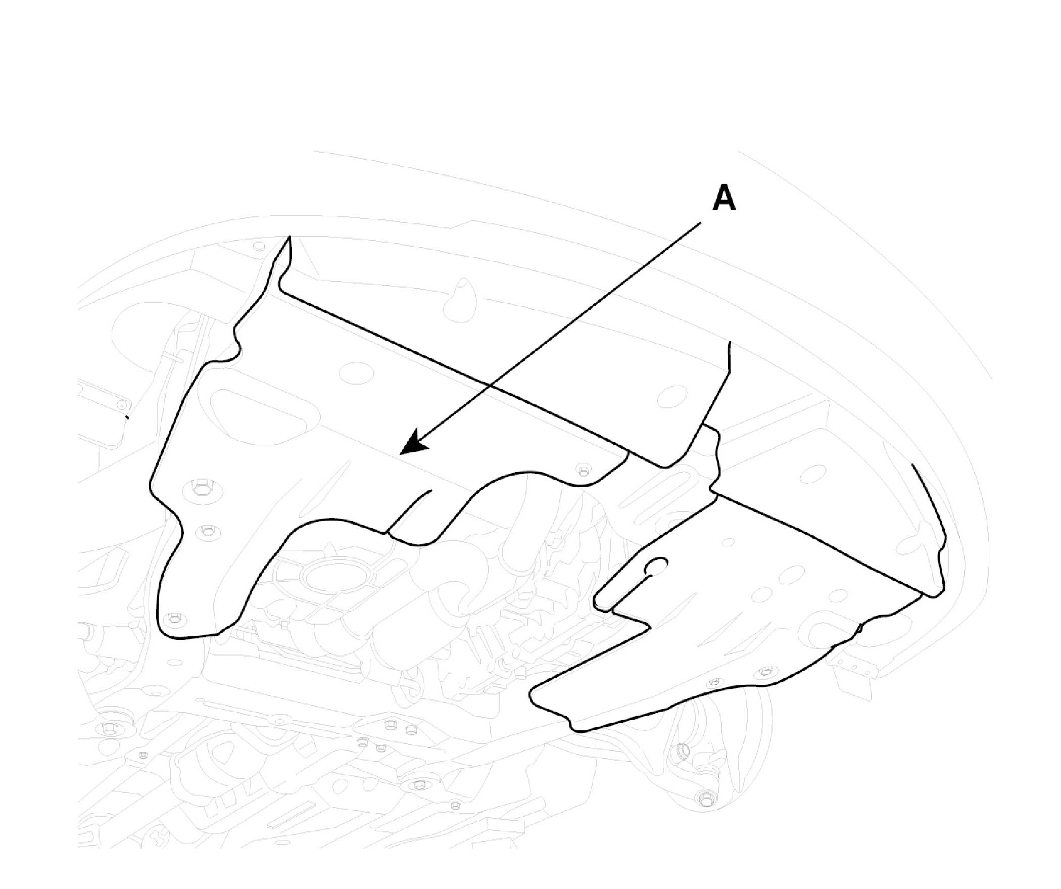 29. Supporting the cross member (A) with a jack, remove the stay with the mounting bolts. Tightening torque: 137.3-156.9 Nm (14.0-16.0 kgf.m, 101.3-115.7 ft. lbs.).