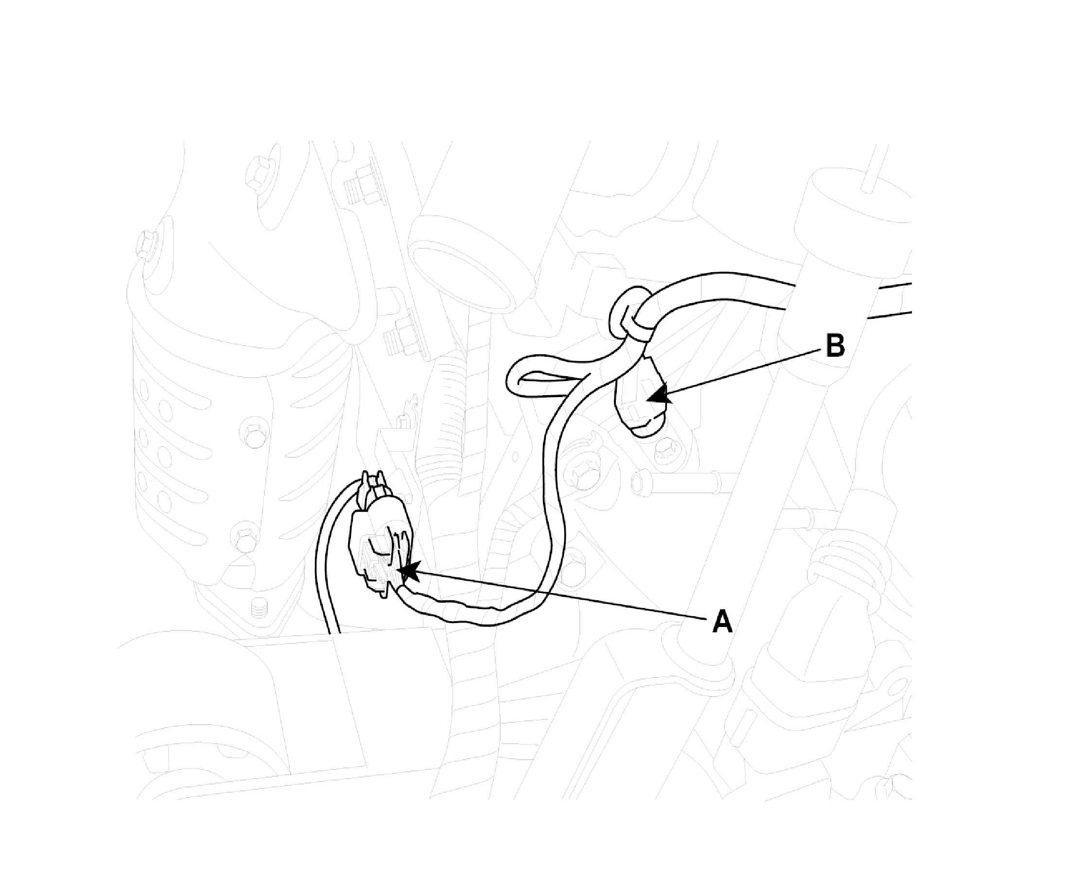 M. Disconnect LH rear oxygen sensor connector (A) and CPS connector (B).