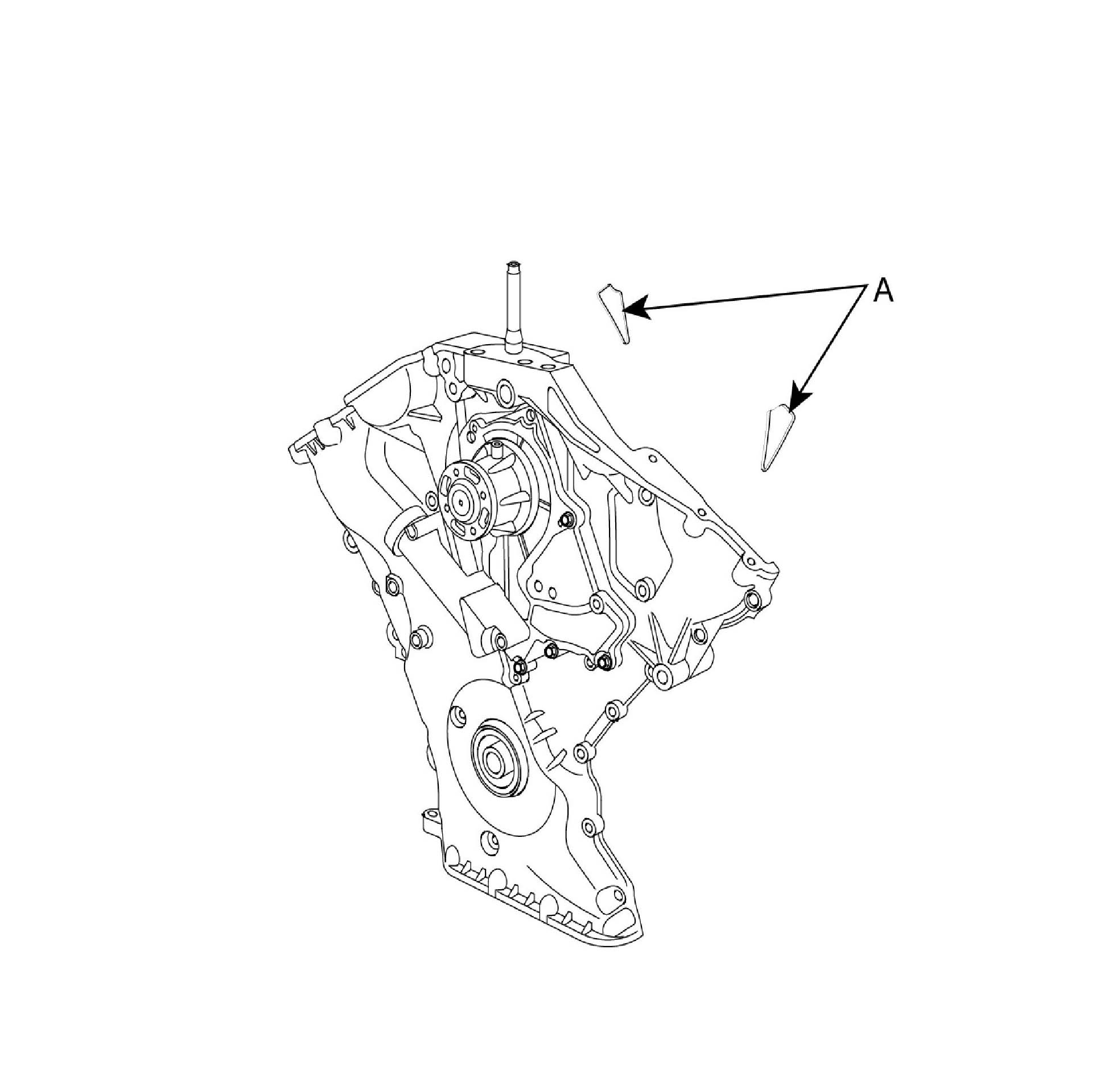 ^ Install the new gasket (A) to the timing chain cover.