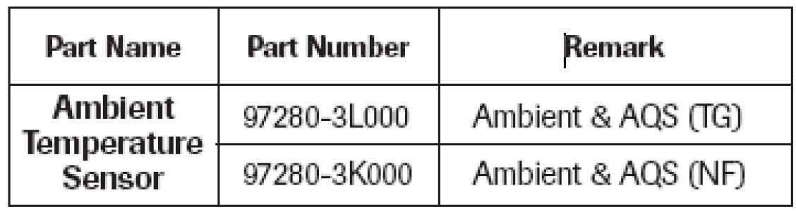 2006 AZERA / SONATA AMBIENT TEMPERATURE SENSOR REPLACEMENTMODEL: 2006 AZERA, SONATA