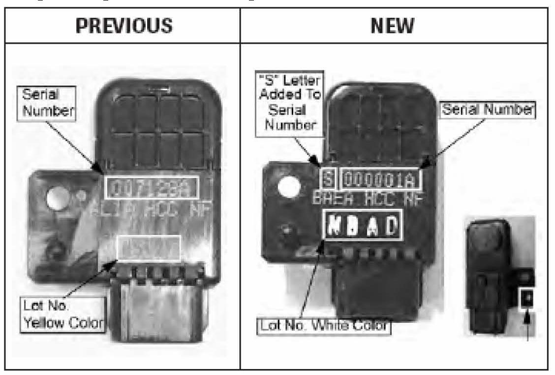 ^ To determine if the vehicle has a factory installed or an updated part, refer to the photos.