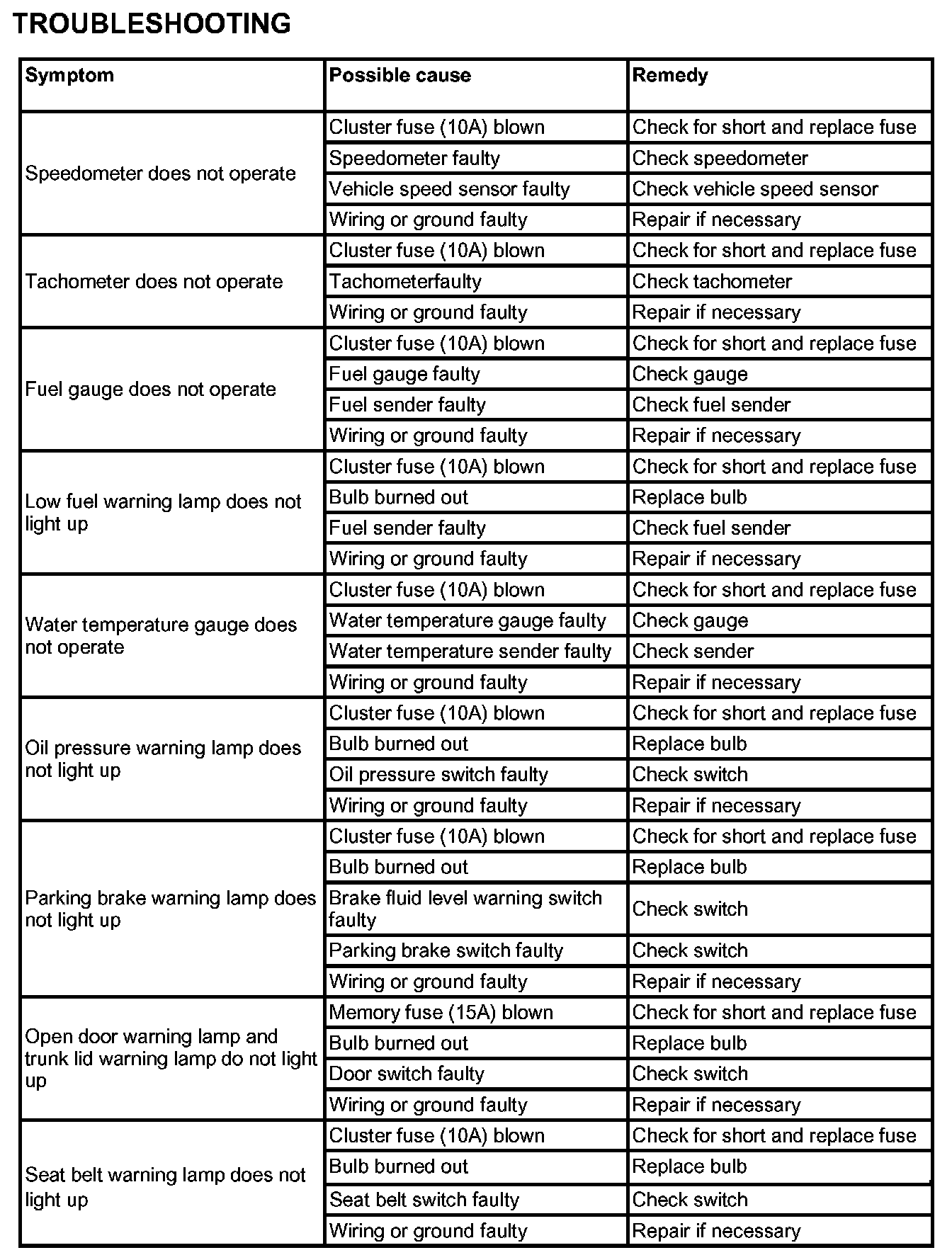 Instrument Panel, Gauges and Warning Indicators: Testing and Inspection