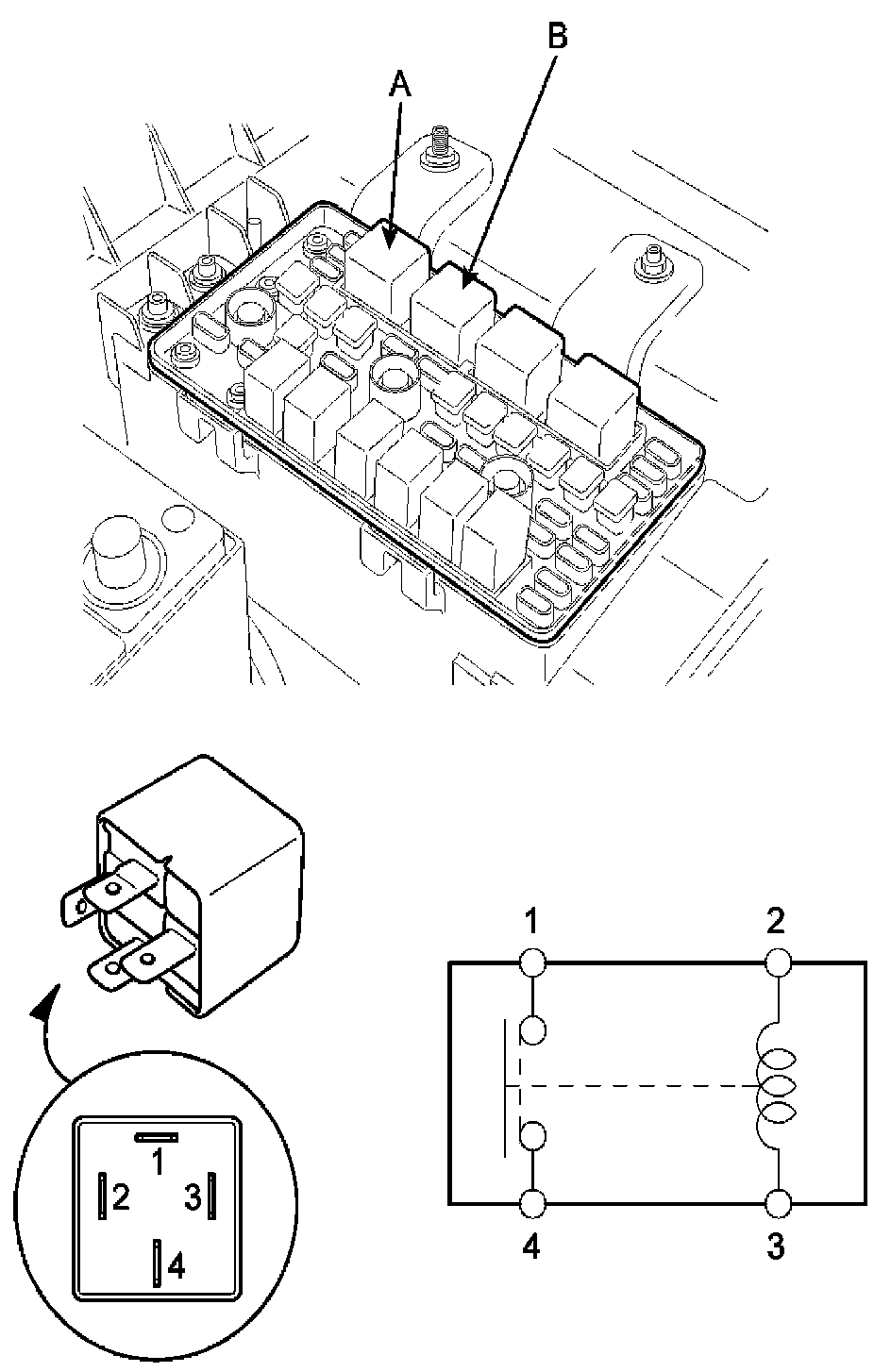 2. Check for continuity between terminals. There should be continuity between the No.1 and No.4 terminals when power and ground are connected to the No.2 and No.3 terminals.