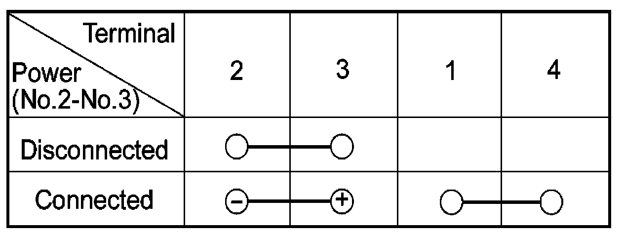 3. There should be no continuity between the No.1 and No.4 terminals when power is disconnected.