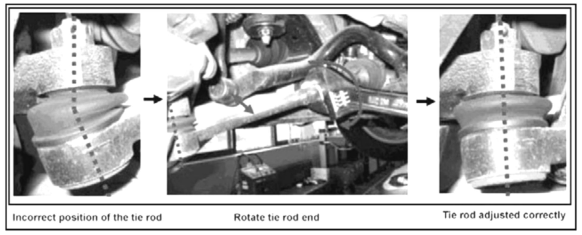 This bulletin describes the correct position of the tie rod end for Azera (TC) and Sonata (NF) vehicles.