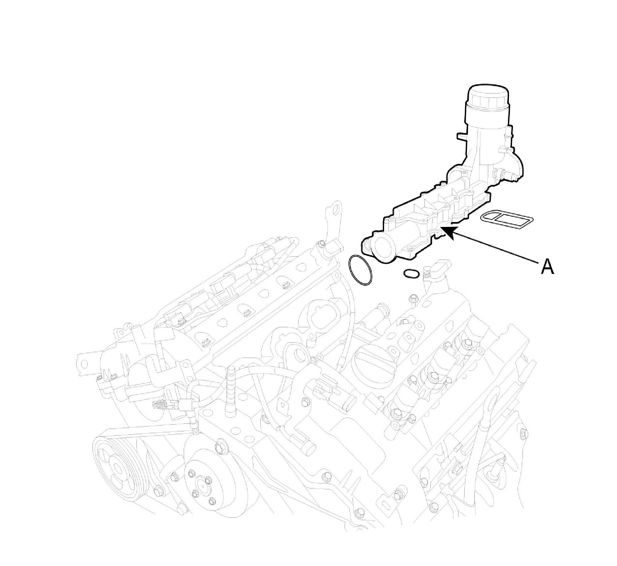 2. Install oil filter body cover (B) and new gasket on the oil filter body.